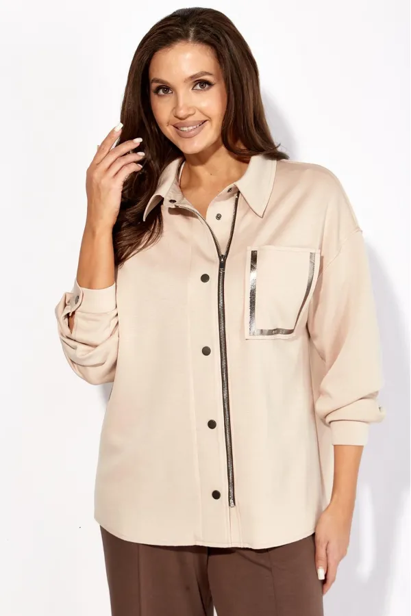 Костюм женский, 2х предметный, изготовлен из трикотажного полотна T E N S E L , состоящий из рубашки и брюк. Рубашка прямого силуэта с длинным рукавом. Рукав со спущенной линией плеча. По низу манжета, с застежкой на кно... Читать далее...