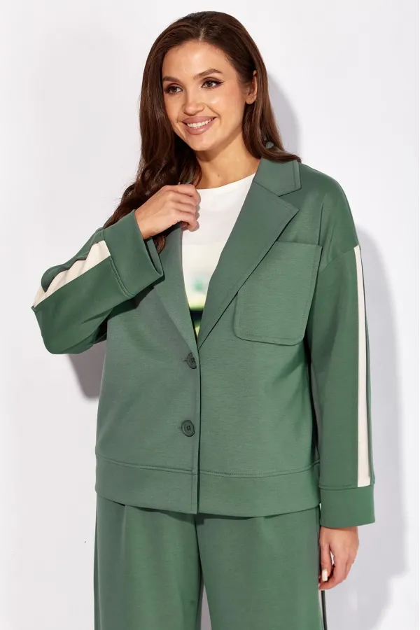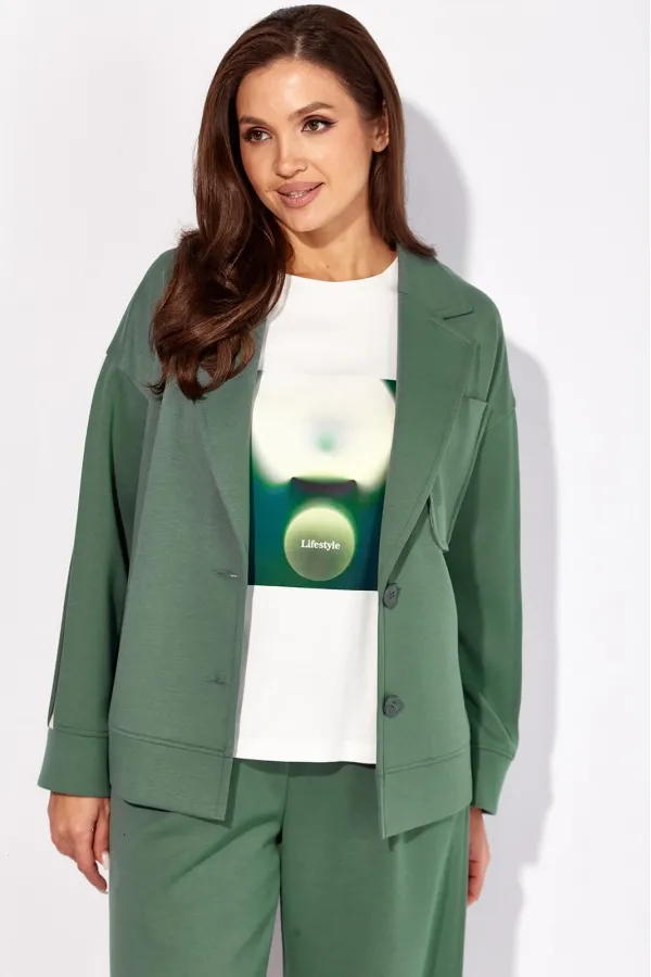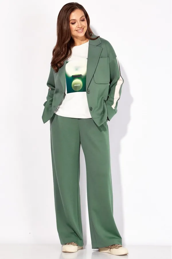 Комплект женский, 3х предметный, состоящий из жакета, топа и брюк. Жакет и брюки выполнены из трикотажного полотна T E N S E L, топ-хлопковый трикотаж (кулирка). Жакет прямого силуэта с длинным рукавом. Рукав со спущенно... Читать далее...