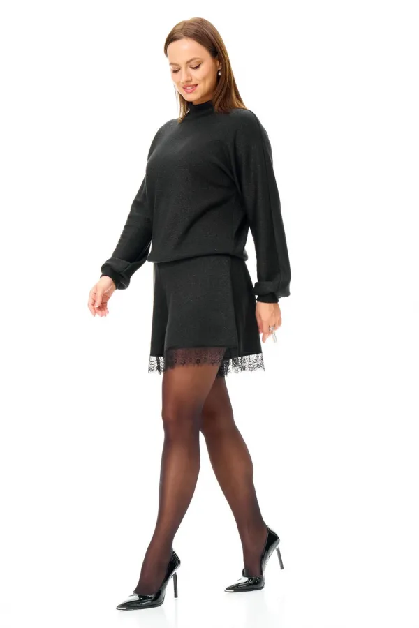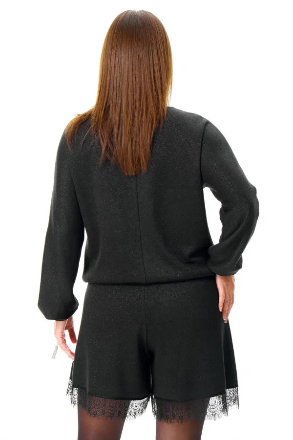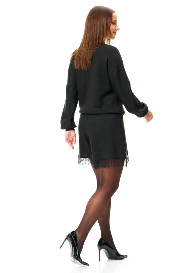 Джемпер, шорты.Ворвемся в Новый год!Классический черный трикотаж с легким блеском.Джемпер свободного силуэта из однотонного трикотажного полотна с неярким блеском «люрекс». Горловина с невысокой «стойкой». Рукав цельно... Читать далее...