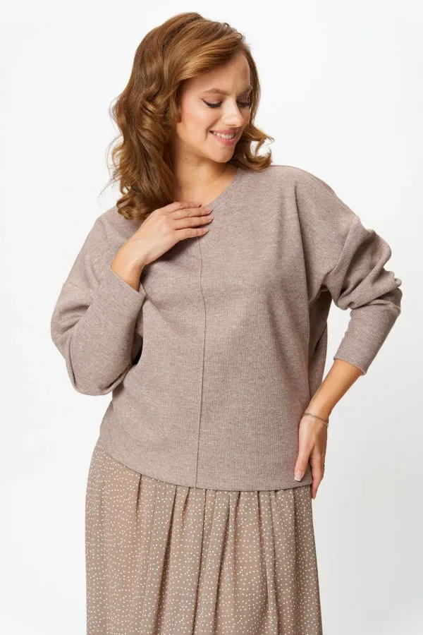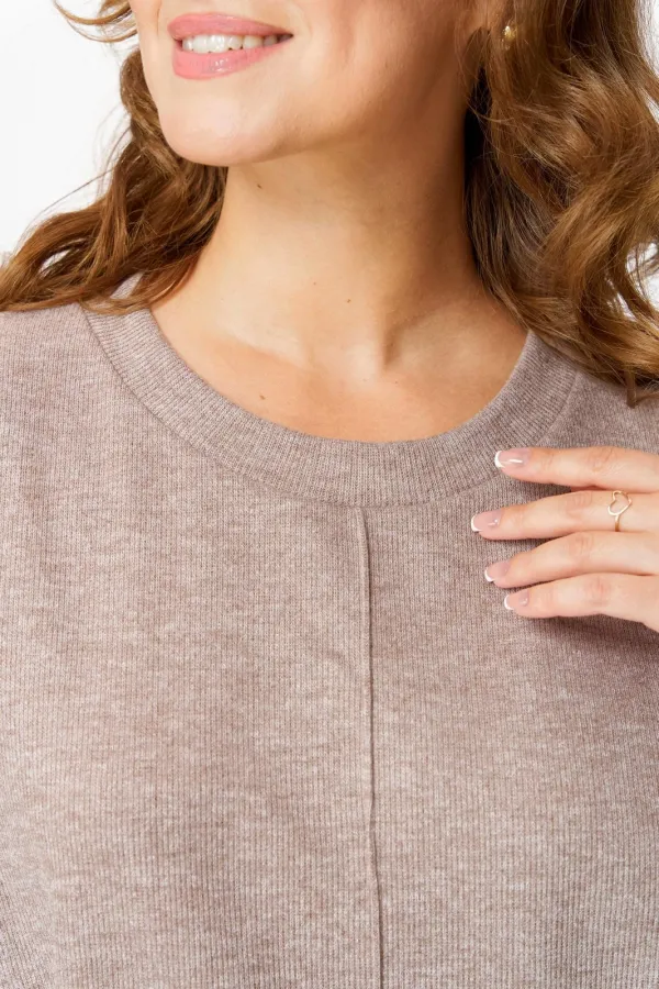 Комплект женский состоит из джемпера и юбки. Джемпер трикотажный свободного покроя типа летучая мышь. По переду и спинке по центру вертикальный декоративный защип, который визуально вытягивает фигуру. Горловина округлой ... Читать далее...