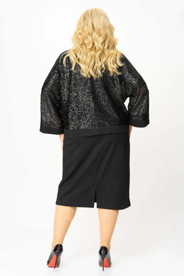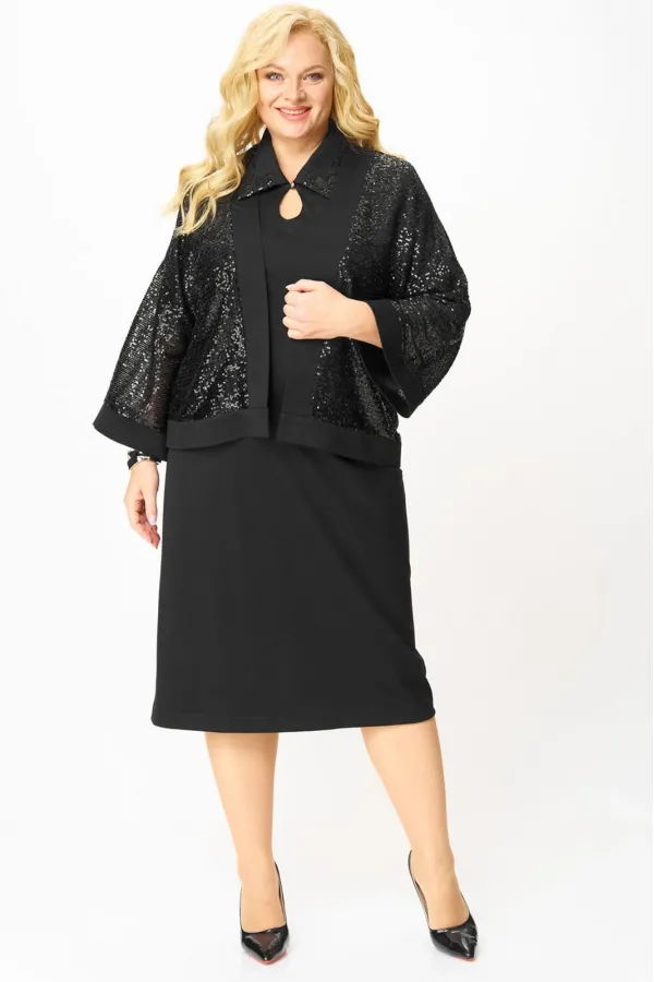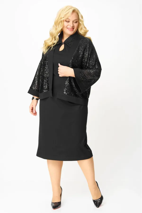 Комплект состоит из лаконичного платья миди и стильного болеро вечернего с пайетками. Комплект станет ярким акцентом Вашего гардероба и добавит уверенность в себе на любом мероприятии, будь то свадьба, выпускной вечер, новогодний корпоратив.