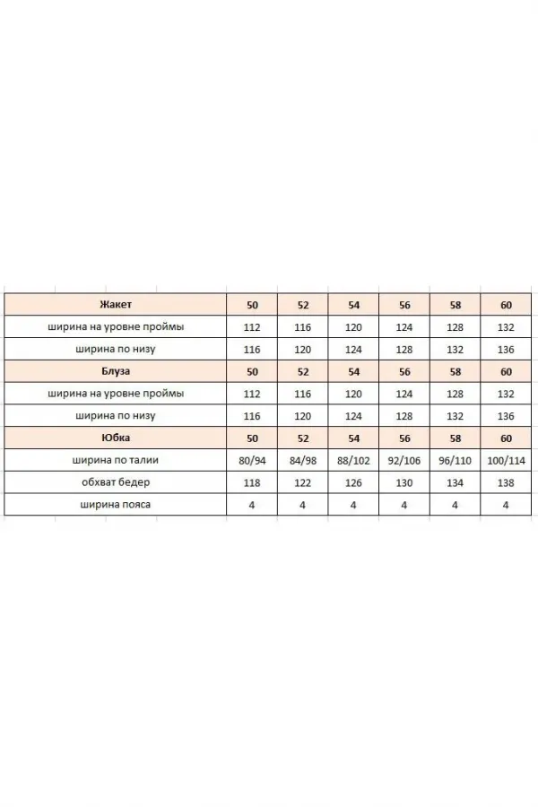 | Ткань | Жакет: 100% полиэстер подкладка 100% полиэстер. Блуза: 97% полиэстер 3 % спандекс. Юбка : 100% полиэстер подкладка 100% полиэстер. |