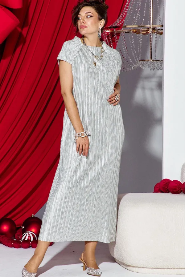Платье прямого силуэта из фактурной ткани с крэш-эффектом, который создает в силуэте вертикальные заломы визуально вытягивающие фигуру и придает модели выразительный образ. Короткий рукав-реглан с навесными петельками и ... Читать далее...