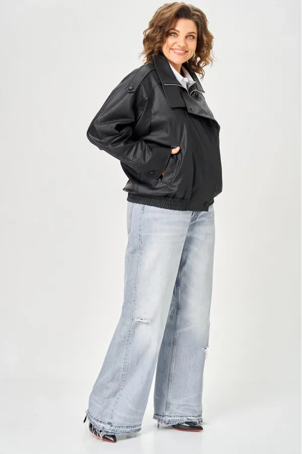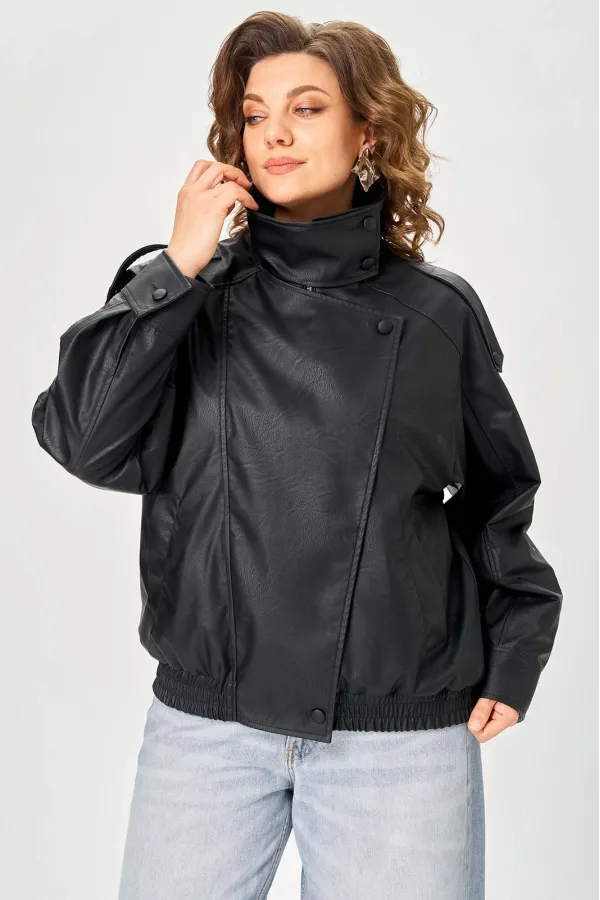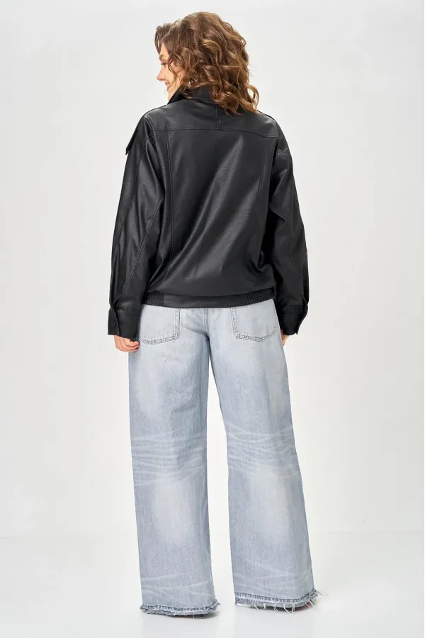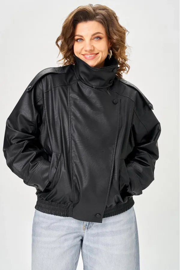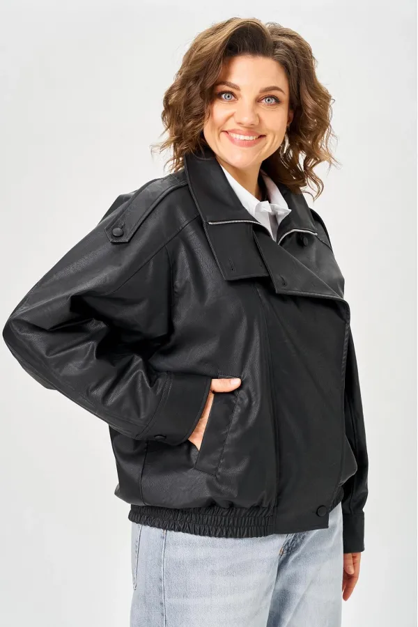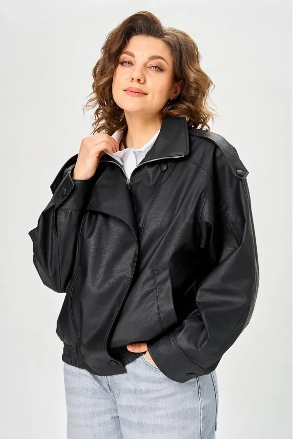 Куртка силуэта оверсайз, выполнена из экокожи. Куртка на подкладке. Полочка с центральной застежкой на молнию и отлетной частью полки, крепящейся на пуговицы, с вертикальными рельефами. На боковых частях полочки обрабо... Читать далее...