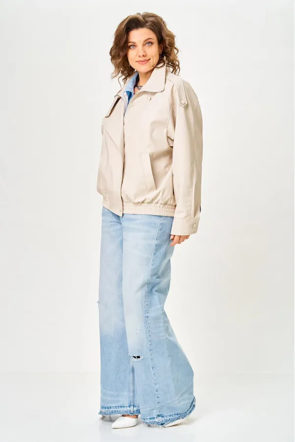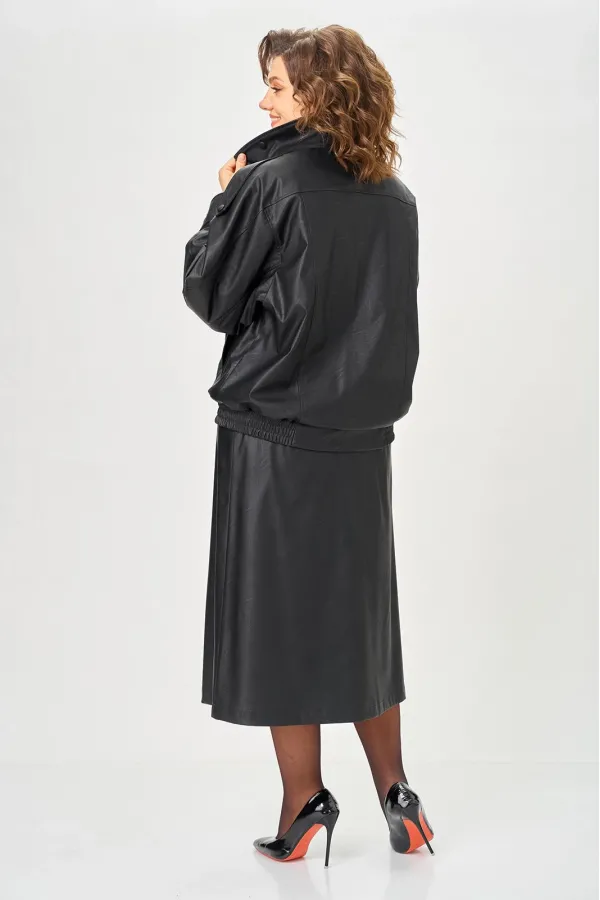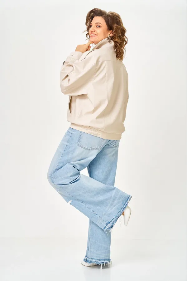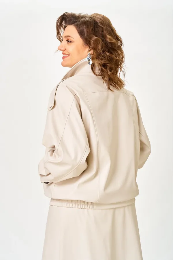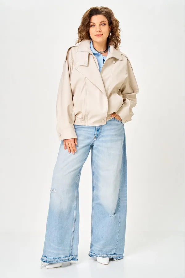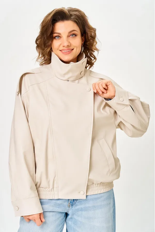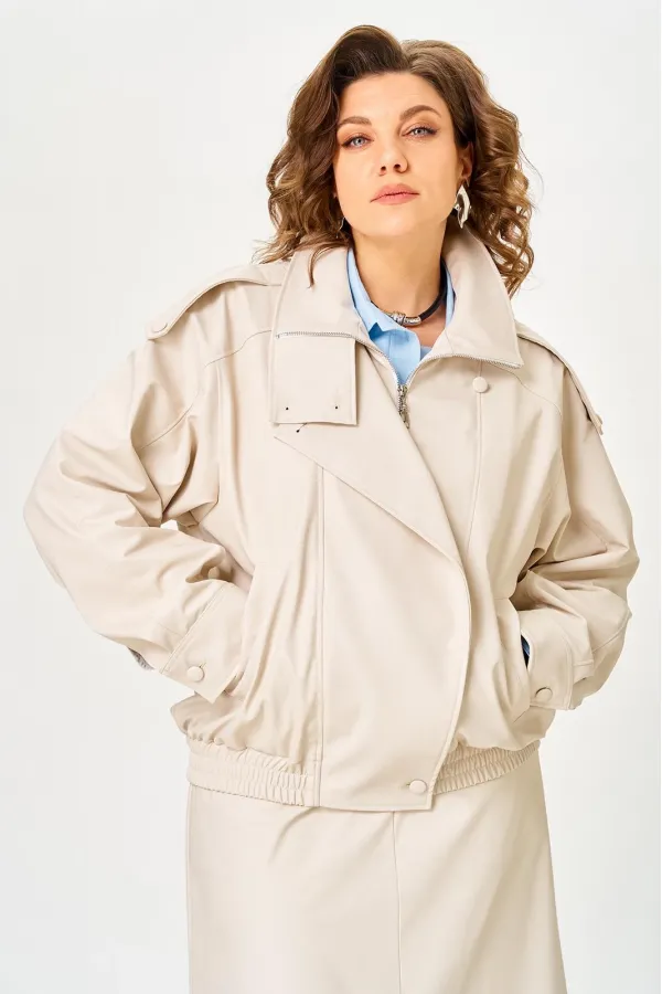 Куртка силуэта оверсайз, выполнена из экокожи. Куртка на подкладке. Полочка с центральной застежкой на молнию и отлетной частью полки, крепящейся на пуговицы, с вертикальными рельефами. На боковых частях полочки обрабо... Читать далее...