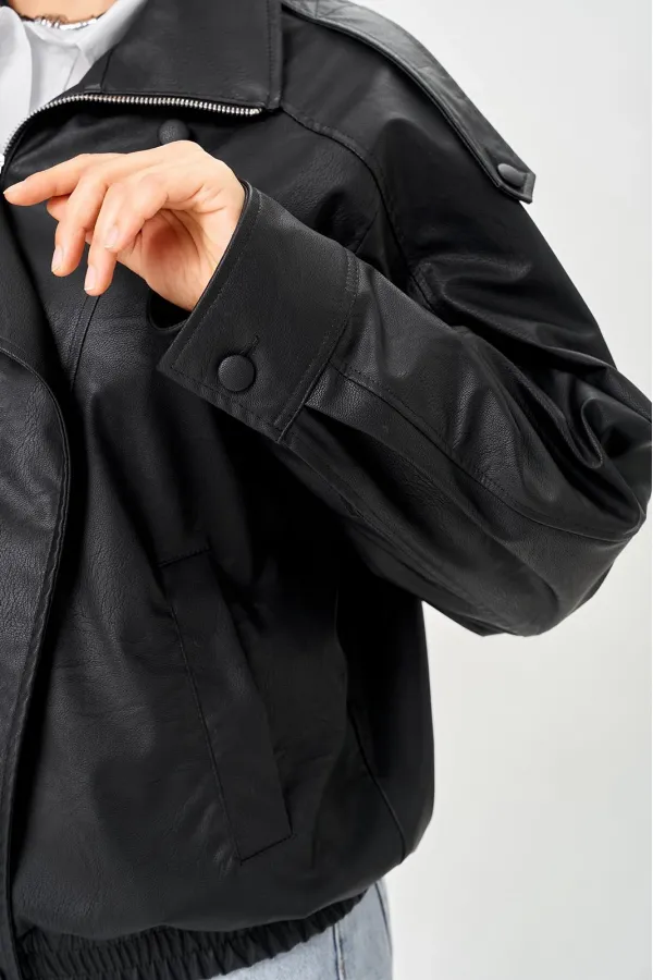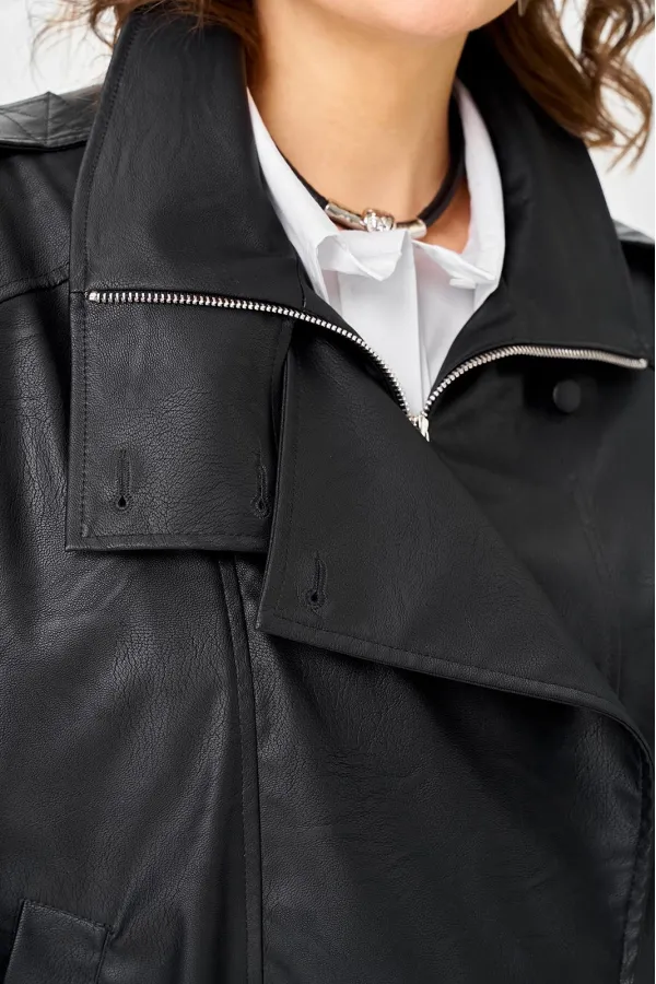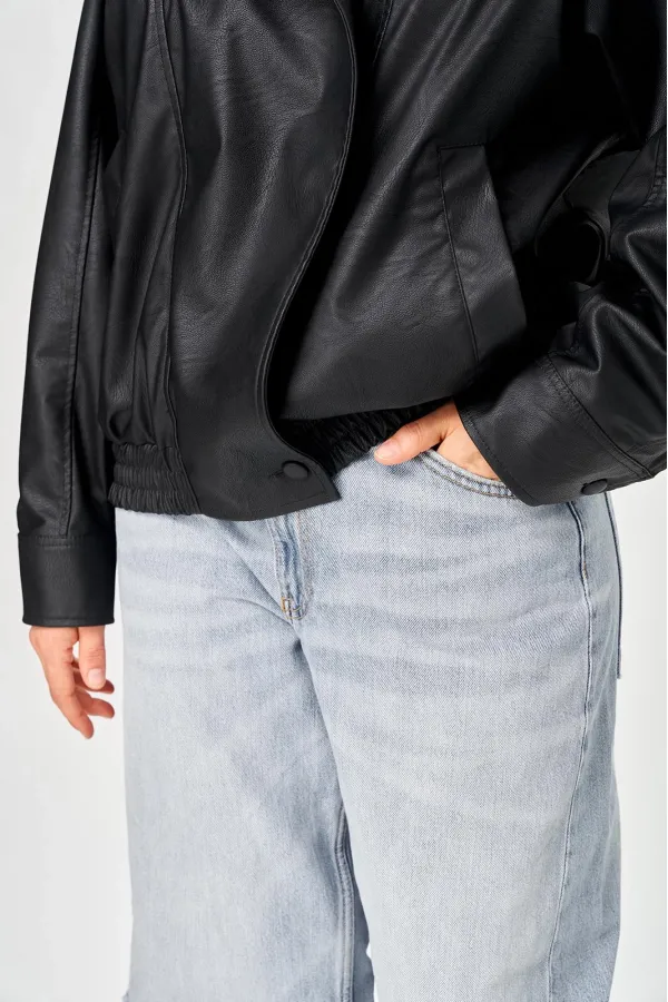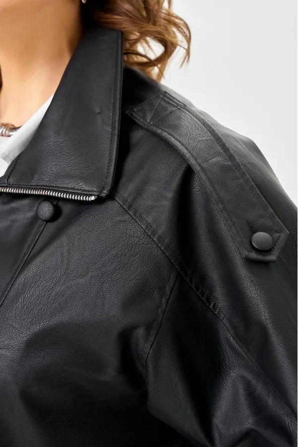 Куртка силуэта оверсайз, выполнена из экокожи. Куртка на подкладке.