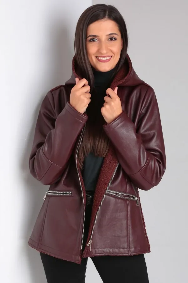 По полочке обработаны рельефы, карманы разрезные функциональные на молнии. Застежка дубленки центральная на металлическую молнию. Горловина - стойка, переходящая в капюшон. Спинка со средним швом. Рукав втачной одношовный, верхняя частьсостоит из двух частей. Низ рукава с подрезом. В модели есть прибавка на верхнюю одежду.