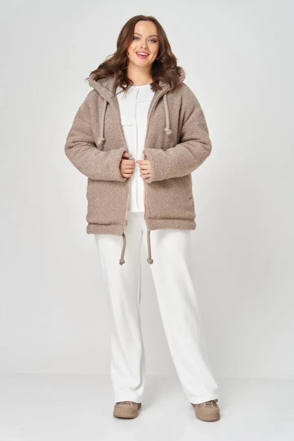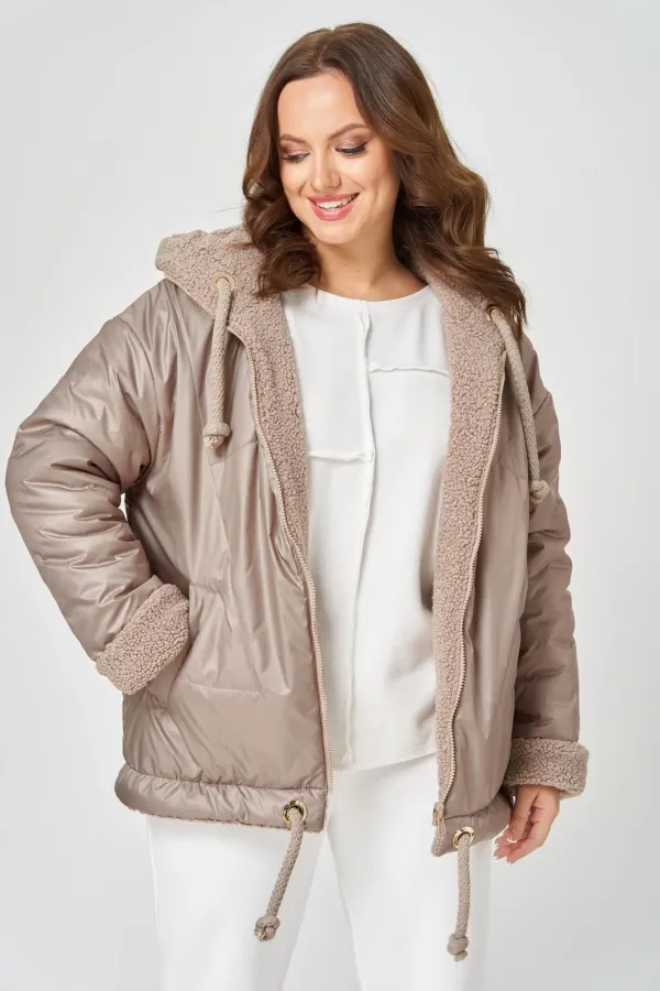 Куртка женская с центральной застёжкой на тесьму-молнию. Двусторонняя. Линия плеча спущена. Рукав втачной одношовный. По переду прорезные карманы с листочкой. Капюшон с центральной частью , по отлету-кулиса. По низу изде... Читать далее...