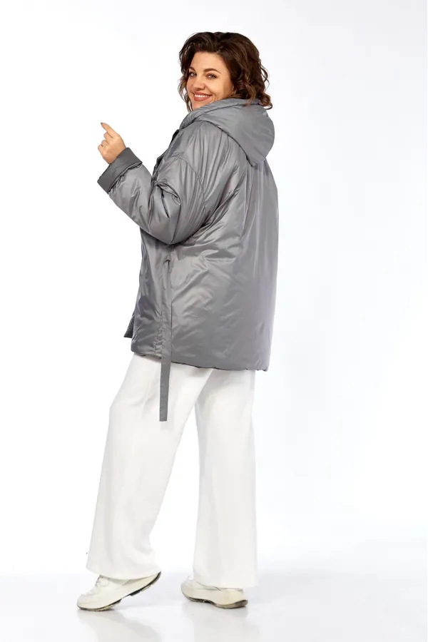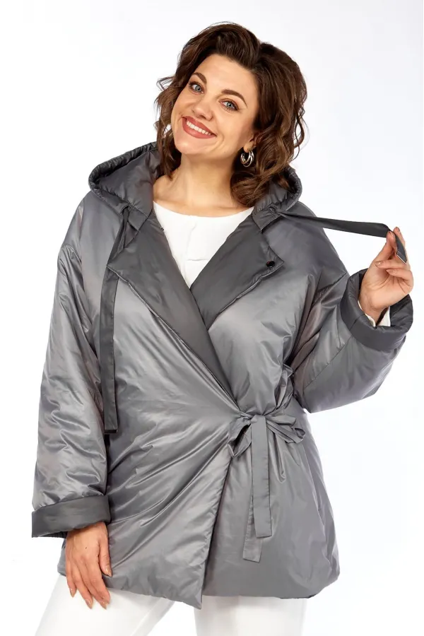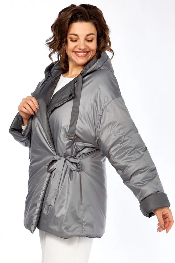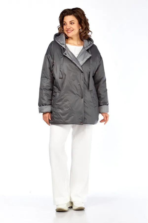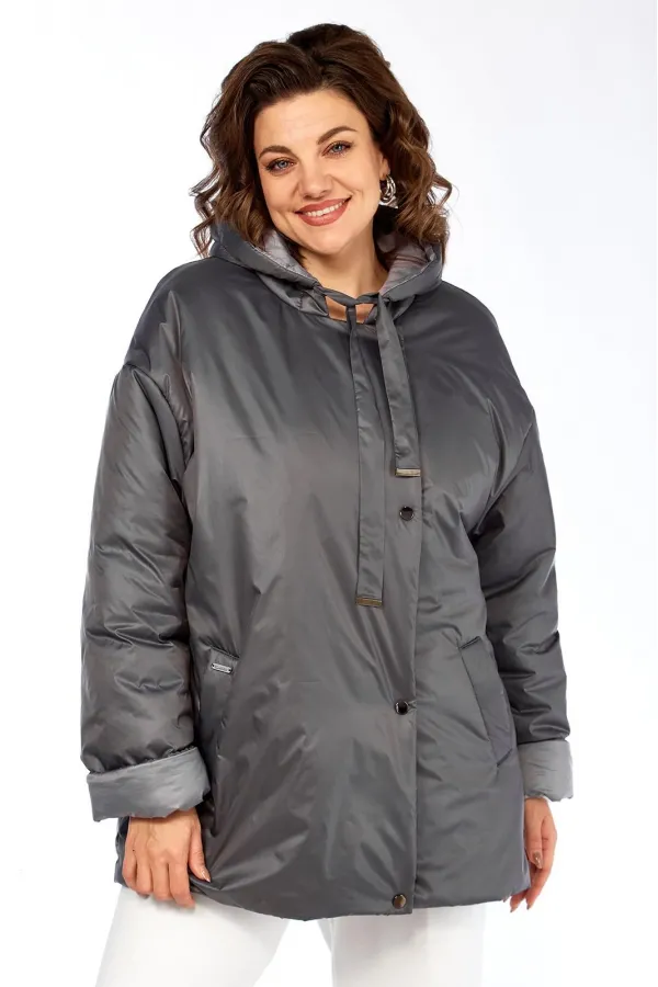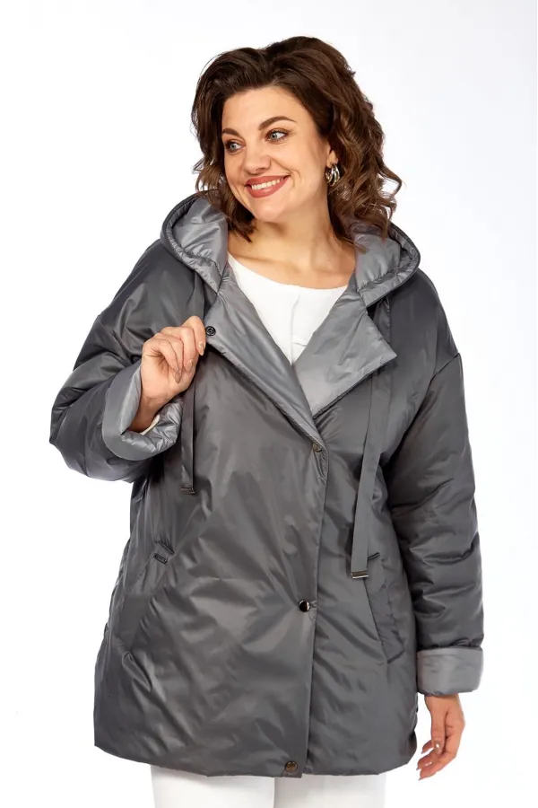 Куртка женская двухсторонняя с центральной бортовой застежкой на кнопки. Спинка простая. Перед с боковыми карманами с одной стороны с листочкой, а внутренняя сторона с карманами в боковых швах. Рукав втачной одношовный со спущенной линией плеча. Воротник-капюшон с кулисой. Есть пояс на резинке с застежкой на пряжку. Куртка утепленная. Температурный режим до - 10 градусов. Фурнитура может отличаться от заявленной на фото.