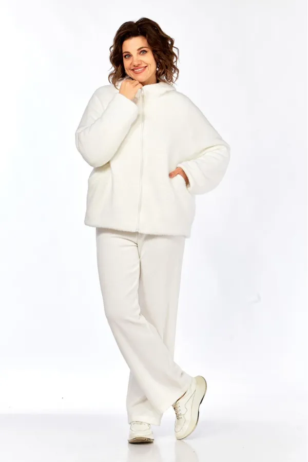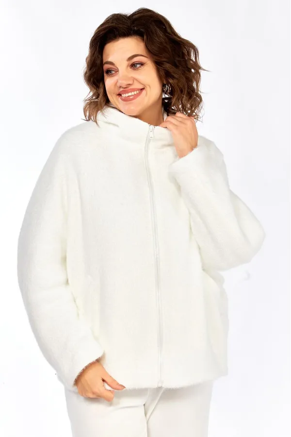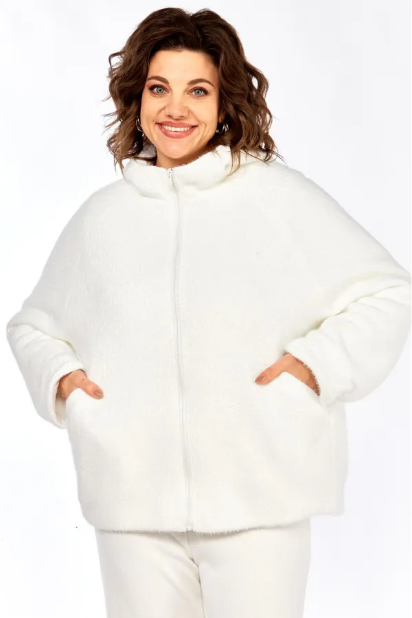 Куртка женская, О-образного силуэта с центральной застежкой на молнию. Спинка простая. Перед с боковыми карманами с листочкой. Рукав-реглан . Воротник-капюшон. По низу куртки в подкладке обработана кулиса со шнуром и регулятором. Температурный режим до 0 градусов.