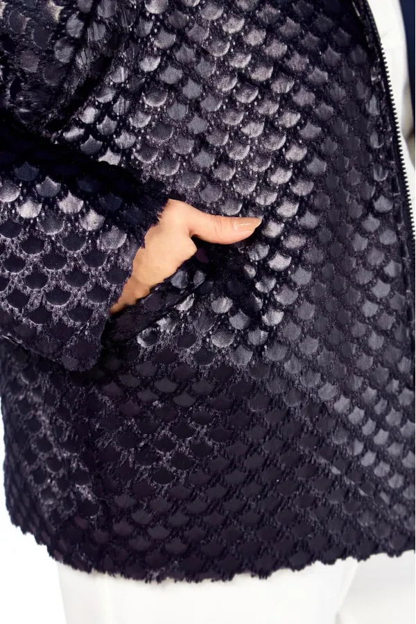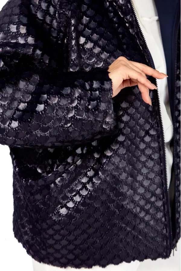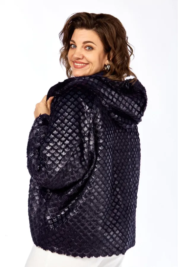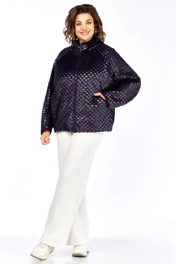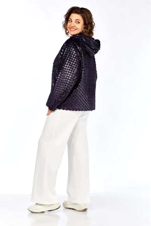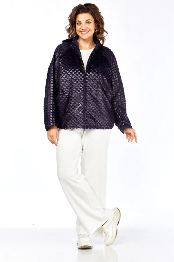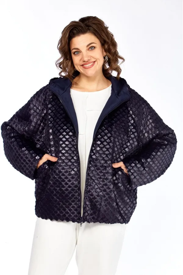 Куртка женская, О-образного силуэта с центральной застежкой на молнию. Спинка простая. Перед с боковыми карманами с листочкой. Рукав-реглан . Воротник-капюшон. По низу куртки в подкладке обработана кулиса со шнуром и регулятором. Температурный режим до 0 градусов.