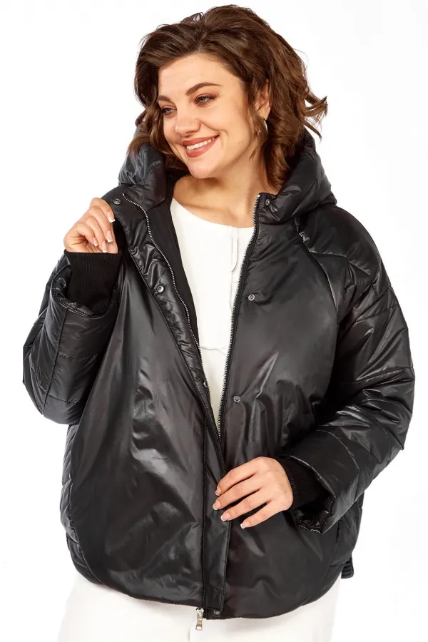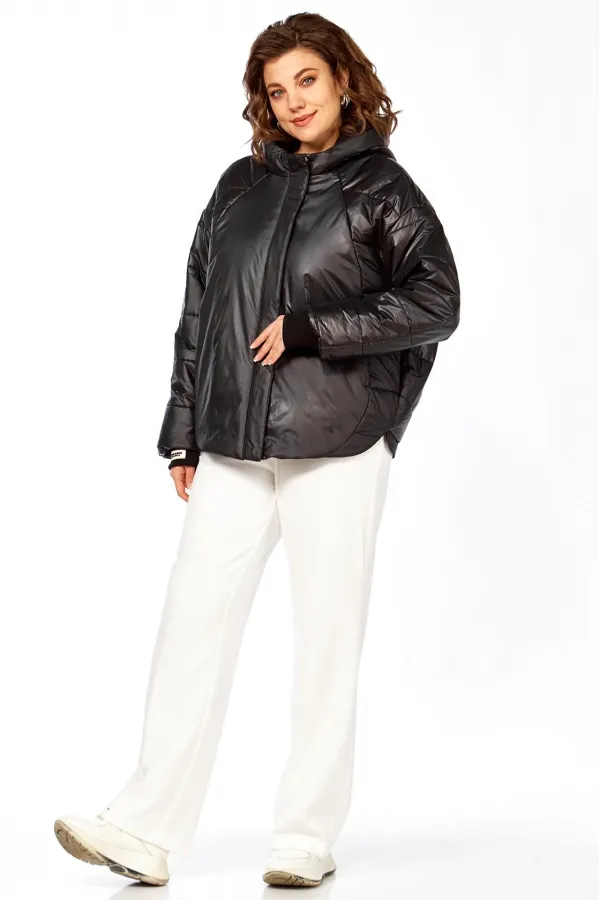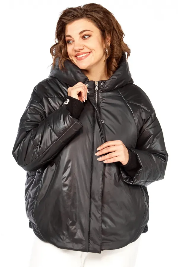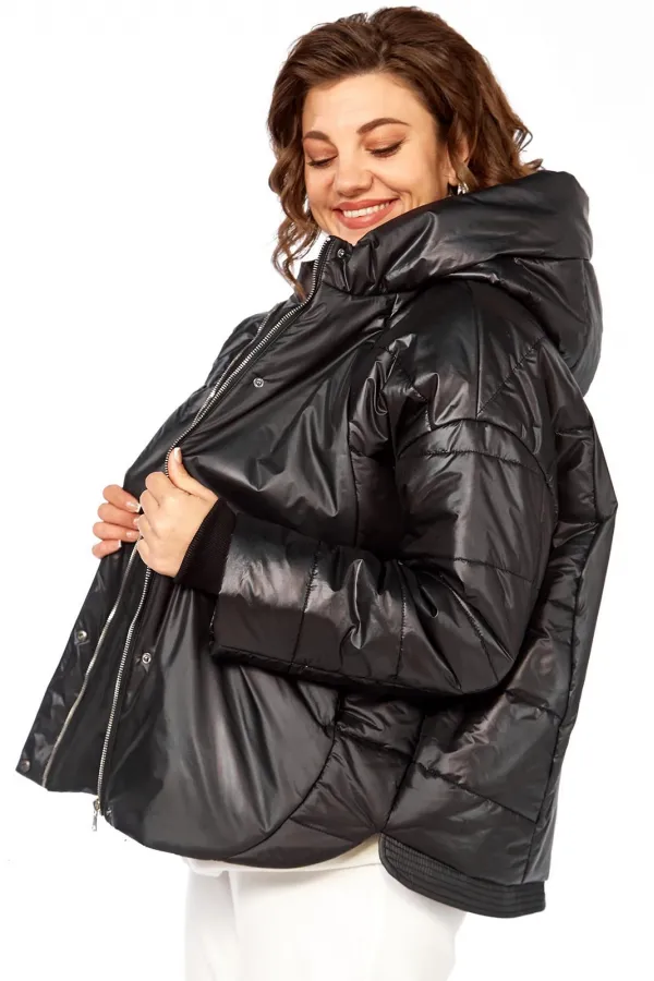 Куртка женская с центральной застежкой на тесьму-молнию и кнопки, спущенная линия плеча. По спинке рельефные швы от горловины до низа, по низу притачная отделочная планка. По переду рельефные швы от горловины до низа, в рельефных швах обработаны карманы. рукав втачной одношовный с манжетом по низу. Капюшон с центральной частью и отделочной деталью по отлету. Утеплитель синтепон 150 гр.Длина по спинке 70 см, длина рукава 54 см.