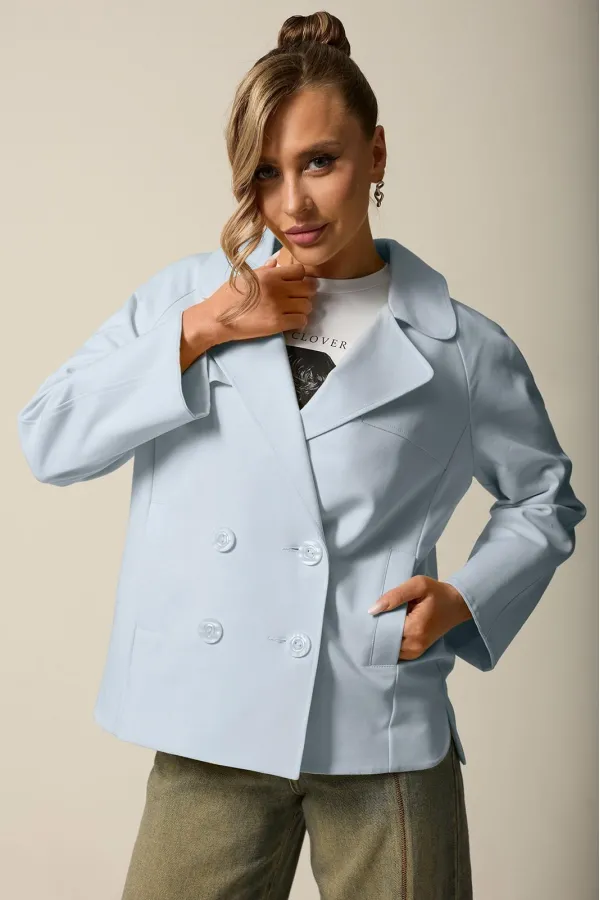 Куртка с центральной двубортной застежкой, отложным воротником и лацканами пиджачного типа. По переду рельефы, выходящие из проймы, в рельефах расположены карманы с втачной листочкой. По правому переду отлетная кокетка. ... Читать далее...