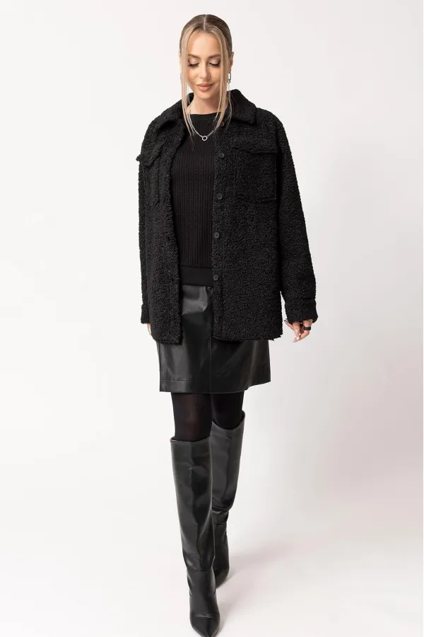 Куртка с центральной застежкой на петли и пуговицы по переду, втачным воротником. По переду накладные карманы с клапанами. Спинка цельная. Низ куртки фигурный.