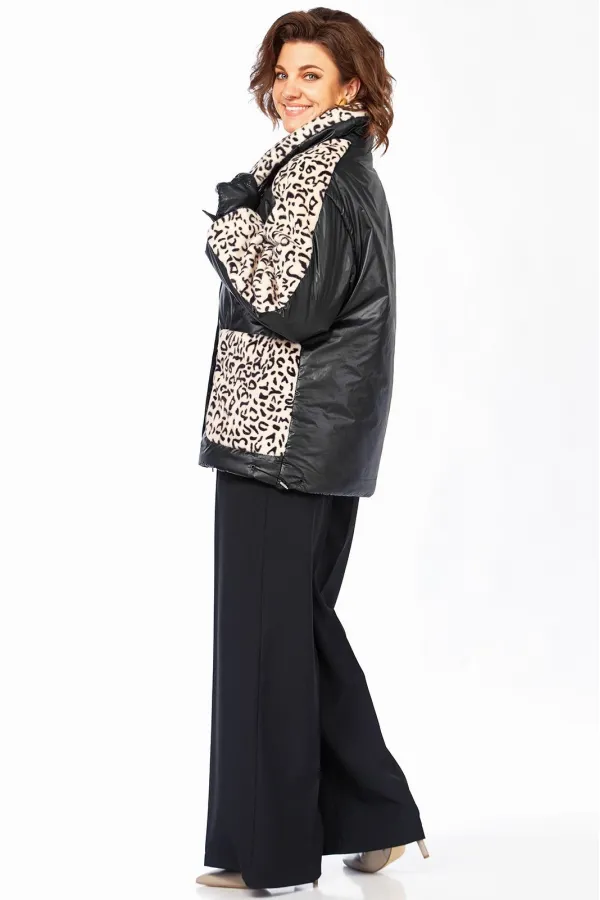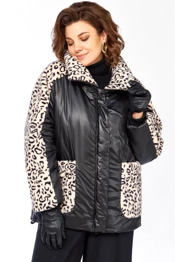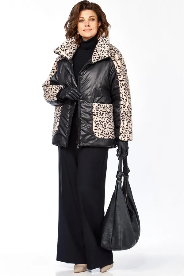 Стильная и тёплая зимняя куртка сочитающая функциональность и модный дизайн изготовлена из плащевой ткани лакке с водоотталкивающий пропиткой , ветрозащитной подкладки мембрана ,утеплена современным синтепоном фил Гуд 200 г который надёжно сохраняет тепло даже морозную погоду главный акцент модели вставки из искусственного меха с леопардовым принтом придающие образу оригинальность и динамику высокий воротник стойка защищает от ветра а накладные карманы добавляют практичности и уюта .прямой силуэт длина до линии бедер, центральная застежка на молнию с планкой обеспечит комфорт и свободу движений . Куртка легко впишется как в повседневный образ с джинсами и сапогами так и в более утончённый силь с классическими брюками и каблуками. Температурный режим от -5 до -20Длина куртки по спинке-72см