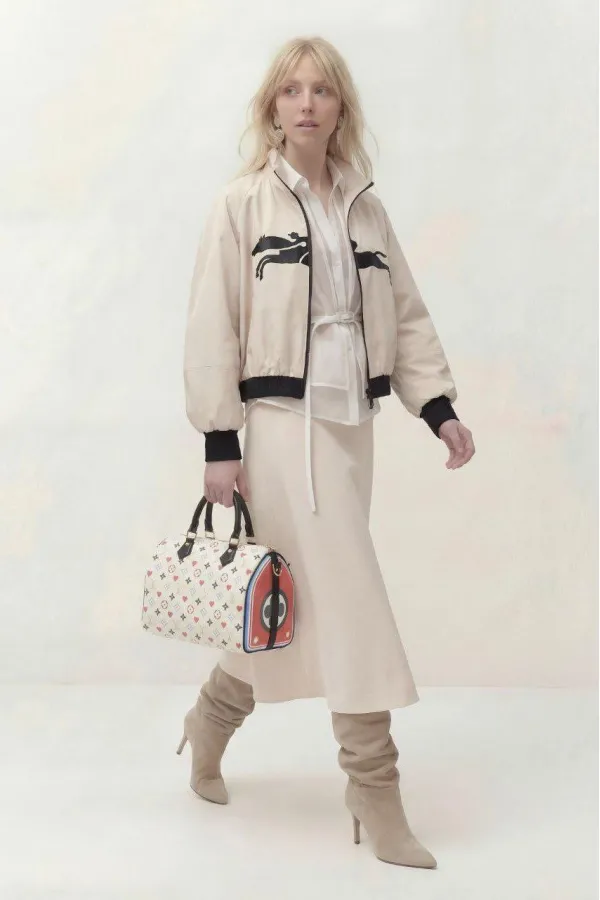 Куртка свободного силуэта из экокожи, на подкладке. Рукав реглан 3/4, объёмный с подрезом в области локтя, низ у рукава сосборен на эластичную тесьму. По горловине воротник стойка, застёжка на молнию. По переду аппликативная вышивка из экокожи, низ куртки сосборен на эластичную тесьму.Длина куртки по спинке: 46 см