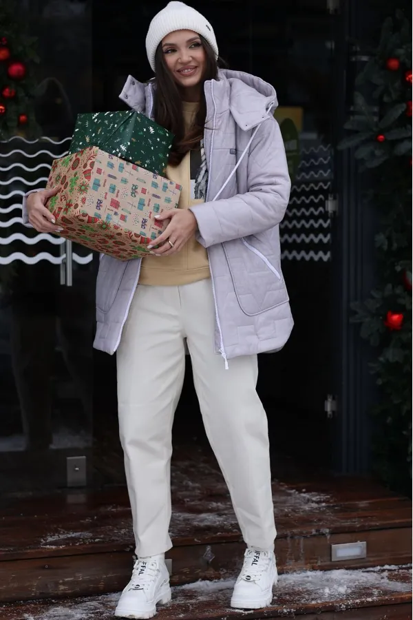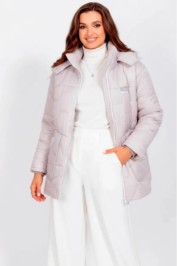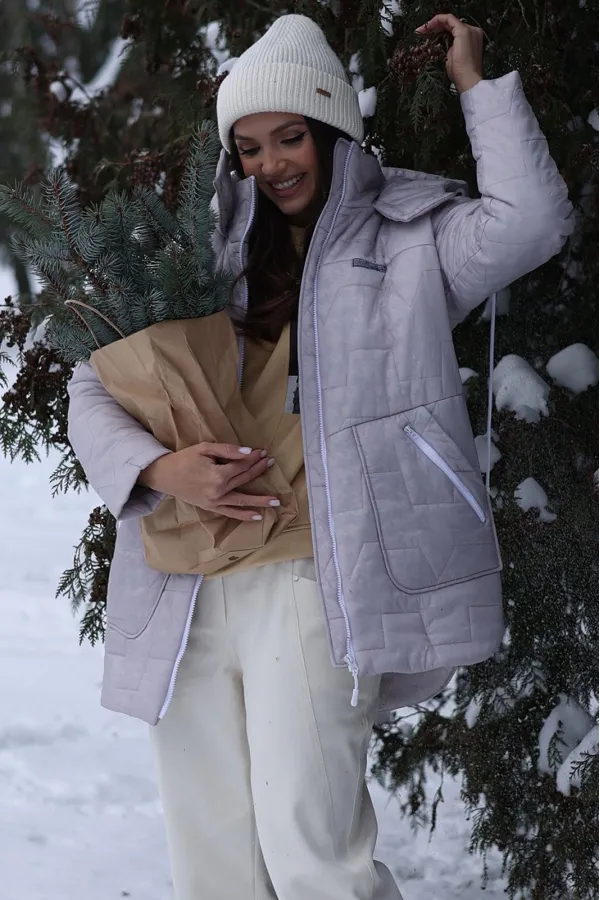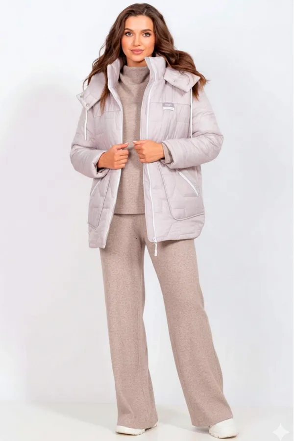 Идеальная куртка для холодного сезона — стильная, теплая и комфортная. Выполнена из стеганой плащевки на утеплителе Изософт 200 г/м², что обеспечивает тепло даже при температуре до -15°C без дополнительных слоев. Для более низких температур рекомендуется надевать под куртку теплую кофту или свитер. Куртка прямого силуэта с спущенными плечами создает современный и расслабленный образ. Фигурные накладные карманы на передней части не только функциональны, но и служат стильным акцентом. Прорезные карманы на молнии обеспечивают безопасность и удобство хранения мелочей. Спинка украшена кокеткой, что добавляет объема и элегантности. Застежка на молнию и воротник-стойка защищают от ветра и холода. Рукава одношовные втачные обеспечивают свободу движений и аккуратную посадку. Подкладка простегана с утеплителем Изософт, что делает куртку мягкой и приятной к телу. капюшон не отстегивается. Декоративный элемент(нашивка) на груди может иметь другой дизайн в тон куртки).