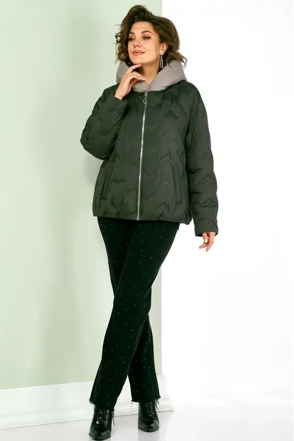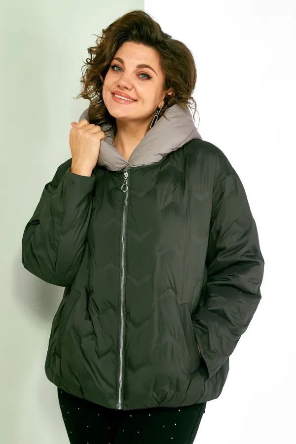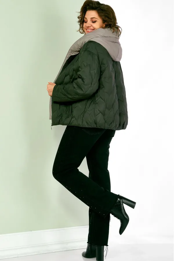 Капюшон не съемный. Спинка цельная. Низ изделия на регулируемой кулисе и с легкими защипами. Утеплитель «облегченный холлофайбер» (специально разработан для демисезонных курток) производство Бельгия с плотностью 110г/кв.м.