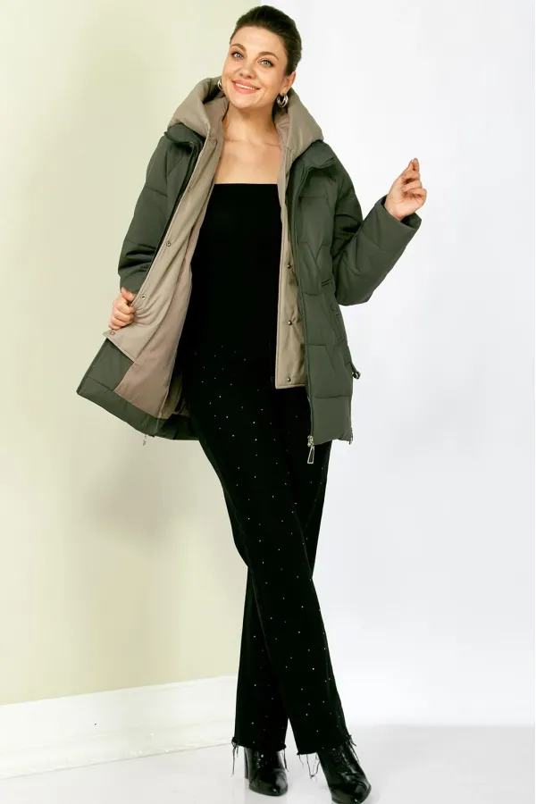 Зимняя стильная женская куртка станет идеальным дополнением гардероба в холодные дни. Выполнена из мягкой, матовой курточной ткани с водоотталкивающим эффектом. На качественной сатиновой подкладке из поливискозы. В качестве утеплителя используется «Холлофайбер» (специально разработан для зимних курток) производство Бельгия с плотностью 200 г/кв.м.. Утеплитель по своим характеристикам легкий и прекрасно держит тепло. По переду прорезные карманы с декоративным элементом на магнитах. Рукав реглан. Застежка двойная, центральная, на тесьму-молнию и под борт на потайные металлические кнопки. Под борт и капюшон отделаны контрастной тканью компаньоном, что придает изделию оригинальный вид.