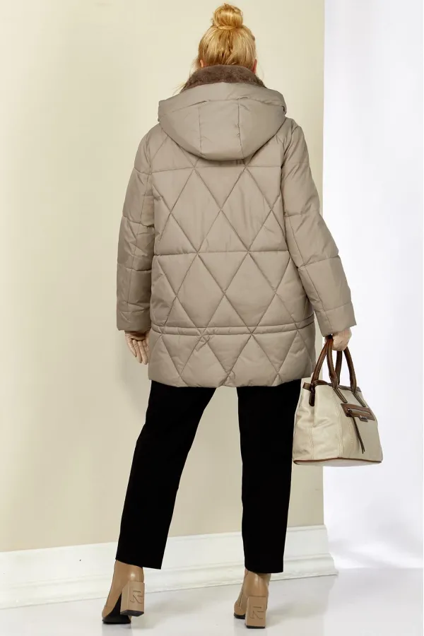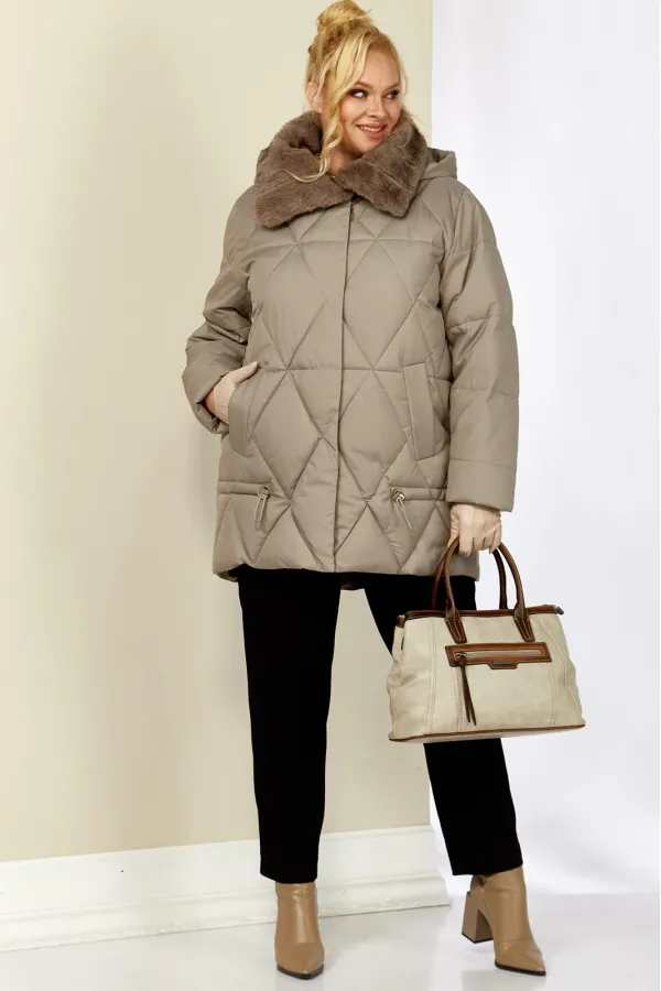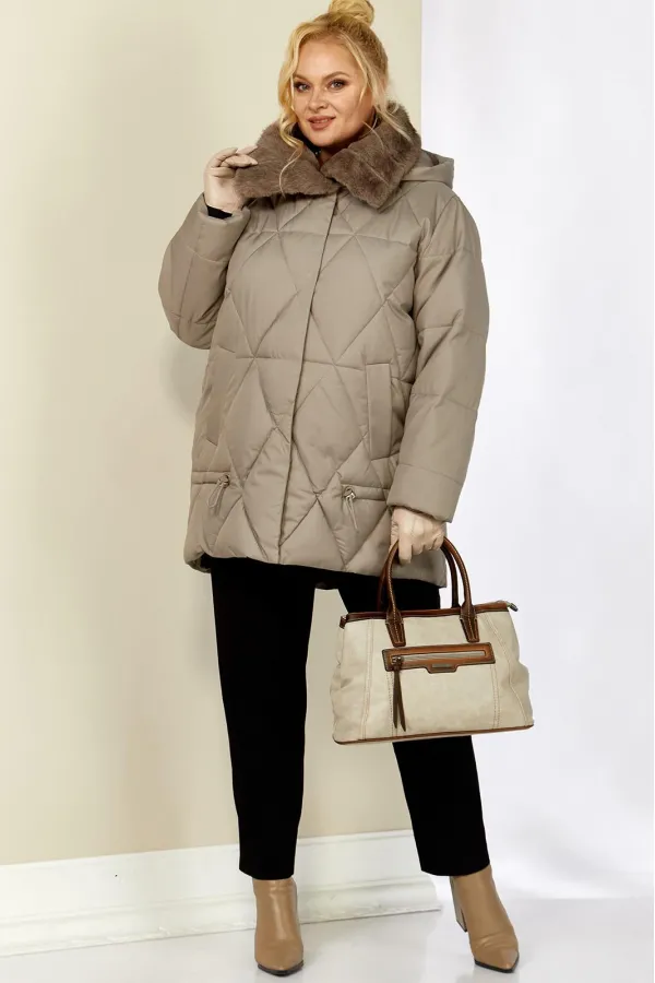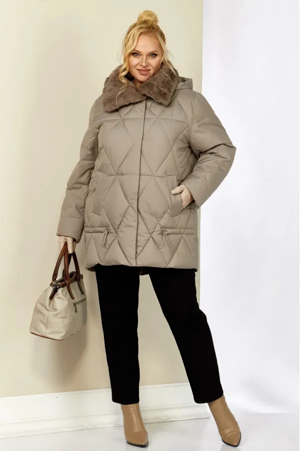 Зимняя, модная женская куртка, которая идеально подойдет для холодных дней, обеспечивая комфорт и защиту от ветра. Изделие прямого, классического стиля, выполнена из курточной матовой ткани высокого качества, непромокаемая. Утеплитель «Холлофайбер» хорошо держит форму и не сбивается. По переду центральная застежка на молнии и металлические кнопки. Карманы прорезного типа на магнитах. Нижняя часть изделия регулируется декоративным шнуром. Рукав втачной. Для защиты от ветра и мороза, рукава по низу дополнены внутренними трикотажными манжетами. Воротник отделан мехом, максимально по внешнему виду приближенный к натуральному «Норка». Капюшон съемный, регулируется декоративным шнуром. Спинка цельная.