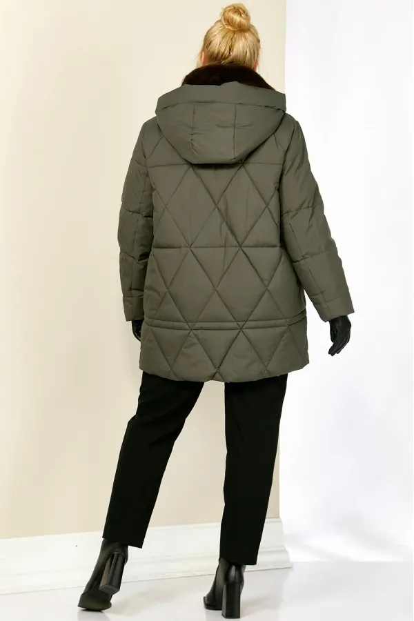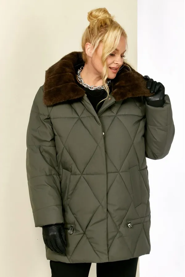 Зимняя, модная женская куртка, которая идеально подойдет для холодных дней, обеспечивая комфорт и защиту от ветра. Изделие прямого, классического стиля, выполнена из курточной матовой ткани высокого качества, непромокаемая. Утеплитель «Холлофайбер» хорошо держит форму и не сбивается. По переду центральная застежка на молнии и металлические кнопки. Карманы прорезного типа на магнитах. Нижняя часть изделия регулируется декоративным шнуром. Рукав втачной. Для защиты от ветра и мороза, рукава по низу дополнены внутренними трикотажными манжетами. Воротник отделан мехом, максимально по внешнему виду приближенный к натуральному «Норка». Капюшон съемный, регулируется декоративным шнуром. Спинка цельная.