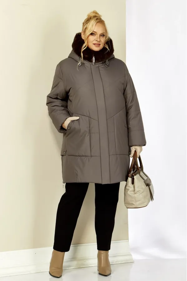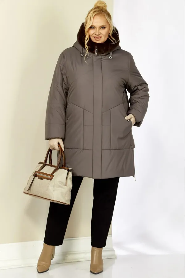 Модная, зимняя удлиненная куртка с утепляющим наполнителем «Верблюжья шерсть», который хорошо держит форму и не сбивается. На подкладке, подкладка прошита, стеганная. Изделие прямого, классического стиля, выполнено из курточной матовой ткани высокого качества, непромокаемое. По переду центральная застежка на молнии с планкой на металлические кнопки, а также функциональными, глубокими, накладными карманами на магнитах и декоративным элементом. Рукав втачной. Для защиты от ветра и мороза, рукава по низу дополнены внутренними трикотажными манжетами. Капюшон не съемный, регулируется декоративным шнуром. Внутренняя часть капюшона отделана мехом, максимально по внешнему виду приближенного к натуральному «Норка». Спинка цельная. Низ изделия с легкими защипами. Боковые швы декорированы молнией (действующая).