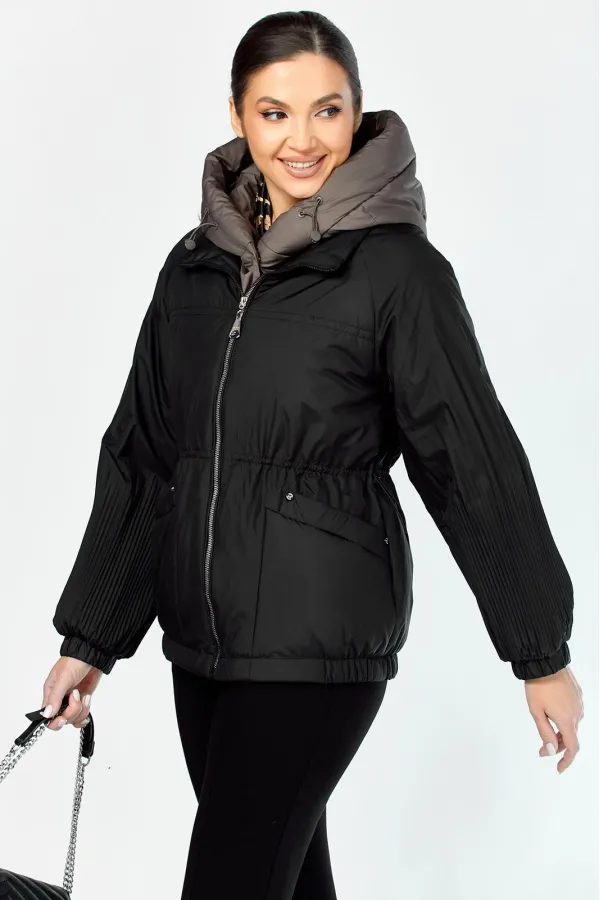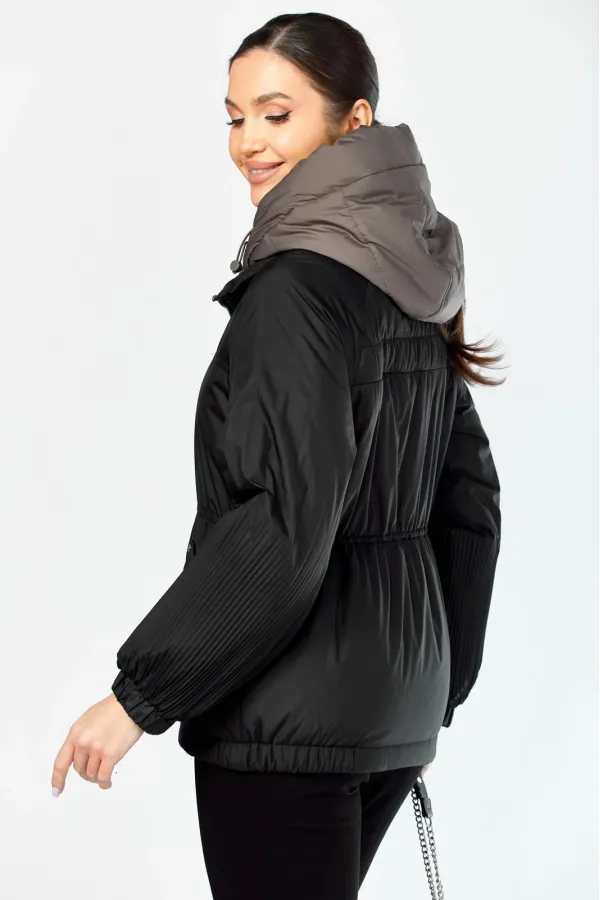 Очень необычная стильная куртка представлена в самых модных оттенках. Выполнена из мягкой, матовой курточной ткани, при этом довольно легкой, с водоотталкивающей пропиткой, на качественной сатиновой подкладке. По переду втачные карманы на магнитных кнопках с декоративной отделкой. Рукав гофре со спущенной линией плеча на резинке. Застежка двойная, центральная, на кнопки, в тон основной ткани и под борт на тесьму-молнию. Манишку при желании можно отстегнуть. Под борт и капюшон отделаны контрастной тканью компаньоном, что придает изделию оригинальный вид. Объем талии регулируется внутренним шнурком. Капюшон съемный, регулируется декоративным шнуром. В нижней части изделия по бокам легкая сборка на резинке.