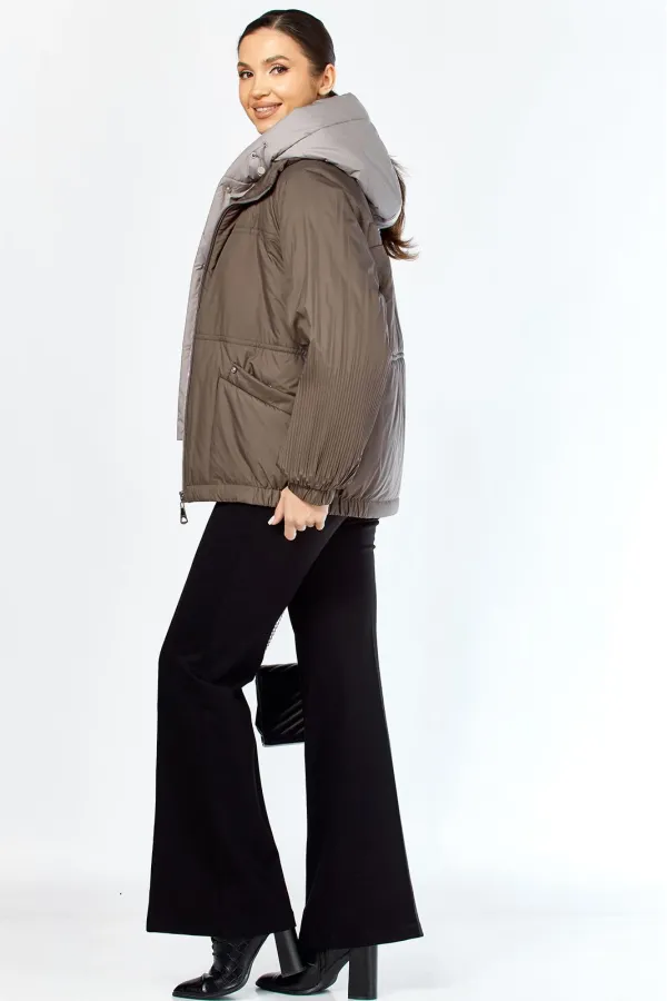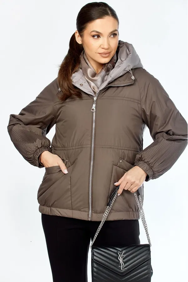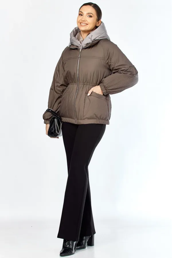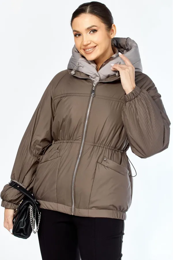 Очень необычная стильная куртка представлена в самых модных оттенках. Выполнена из мягкой, матовой курточной ткани, при этом довольно легкой, с водоотталкивающей пропиткой, на качественной сатиновой подкладке. По переду втачные карманы на магнитных кнопках с декоративной отделкой. Рукав гофре со спущенной линией плеча на резинке. Застежка двойная, центральная, на кнопки, в тон основной ткани и под борт на тесьму-молнию. Манишку при желании можно отстегнуть. Под борт и капюшон отделаны контрастной тканью компаньоном, что придает изделию оригинальный вид. Объем талии регулируется внутренним шнурком. Капюшон съемный, регулируется декоративным шнуром. В нижней части изделия по бокам легкая сборка на резинке.