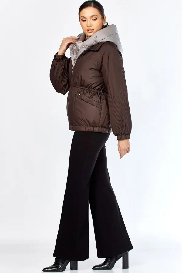 Очень необычная стильная куртка представлена в самых модных оттенках. Выполнена из мягкой, матовой курточной ткани, при этом довольно легкой, с водоотталкивающей пропиткой, на качественной сатиновой подкладке. По переду втачные карманы на магнитных кнопках с декоративной отделкой. Рукав гофре со спущенной линией плеча на резинке. Застежка двойная, центральная, на кнопки, в тон основной ткани и под борт на тесьму-молнию. Манишку при желании можно отстегнуть. Под борт и капюшон отделаны контрастной тканью компаньоном, что придает изделию оригинальный вид. Объем талии регулируется внутренним шнурком. Капюшон съемный, регулируется декоративным шнуром. В нижней части изделия по бокам легкая сборка на резинке.