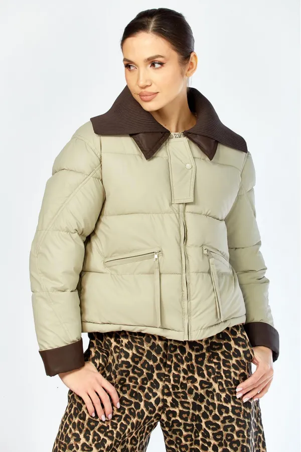 Укороченная стёганая молодежная куртка оверсайз силуэта создана для тех, кто ищет идеальный баланс между комфортом и стилем в прохладный сезон. Застежка центральная на молнии с планкой ,в верхней части, на кнопку. Прорезные карманы на молнии с декоративной подвеской в тон основной ткани позволят удобно разместить необходимые мелочи. Рукава втачные могут быть с отворотом и без. Воротник двойной, украшен трикотажным довязом контрастного цвета (не съемный).