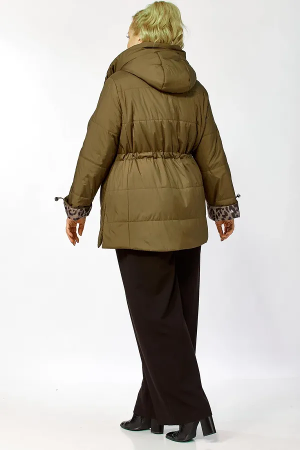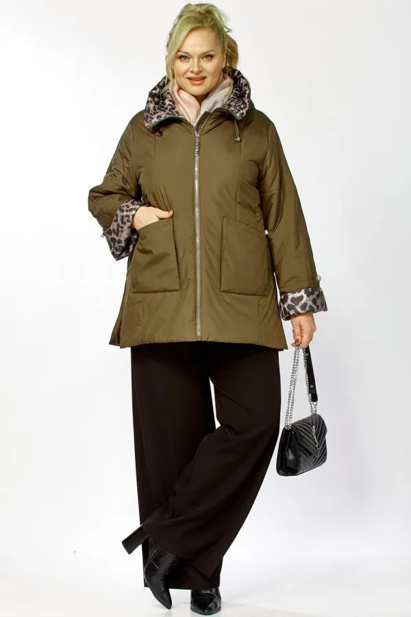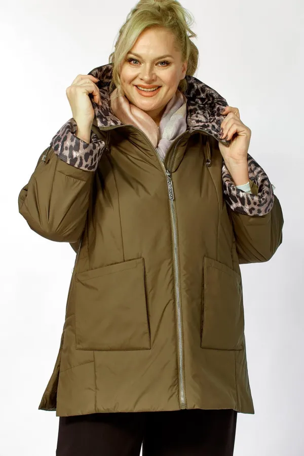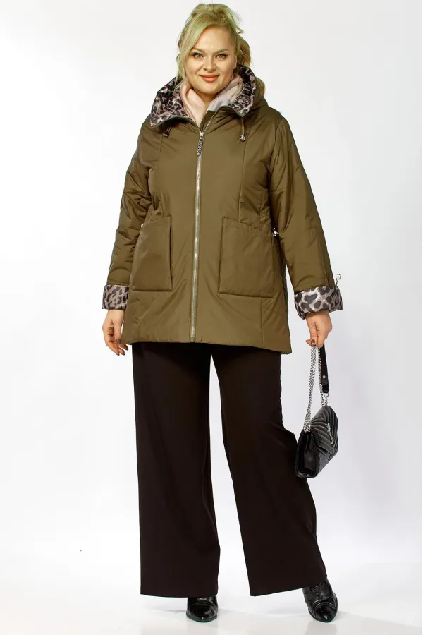 Модная утепленная демисезонная женская куртка на подкладке. Представляет собой идеальный выбор на осень и весну для женщин, ищущих комфорт и стиль. Изделие прямого силуэта, слегка расклешённое к низу. Выполнено из мягкой, матовой курточной ткани, при этом довольно легкой, с водоотталкивающей пропиткой, на тонком синтепоне. По переду рельефные швы и накладные карманы. Застежка центральная на молнии с декоративной подвеской, имеет длину от линии низа до верхнего края воротника-стойки, переходящего в капюшон. Капюшон глубокий, не съемный, регулируется декоративным шнуром. Рукав втачной, двух шовный. Под борт капюшон и отворот рукавов отделаны контрастной тканью компаньоном, что придает изделию оригинальный вид. Низ изделия фигурный, спинка длиннее переда на 5 см. Боковые швы оформлены разрезами, что делает её удобной при посадке. Спинка и рукав на регулируемой кулисе.