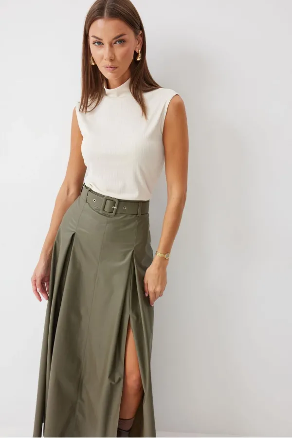 Джемпер прилегающего силуэта из трикотажного полотна. Воротник – стойка.