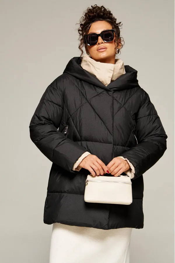 Современный объёмный крой и спущенная линия плеч создают расслабленный актуальный силуэт. А широкий воротник играет роль дизайнерского акцента.