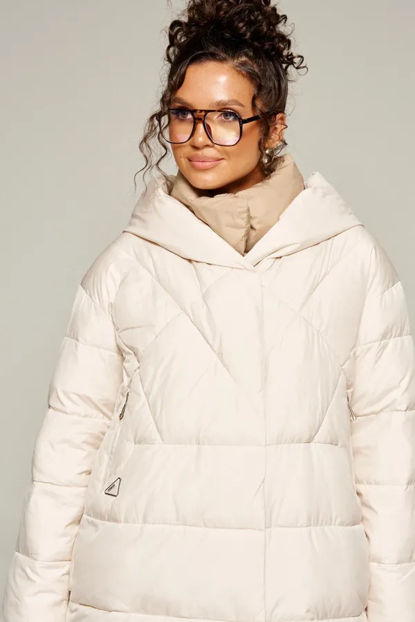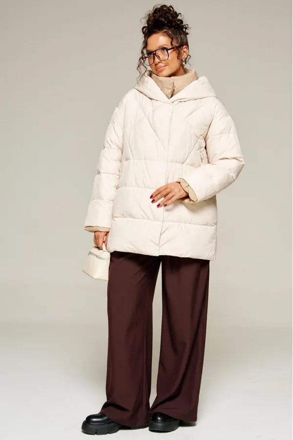 Современный объёмный крой и спущенная линия плеч создают расслабленный актуальный силуэт. А широкий воротник играет роль дизайнерского акцента.