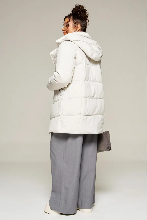 Зимнее, стеганое пальто прямого силуэта для ценителей стиля и практичности. Это отличное сочетание современных материалов и точного кроя.