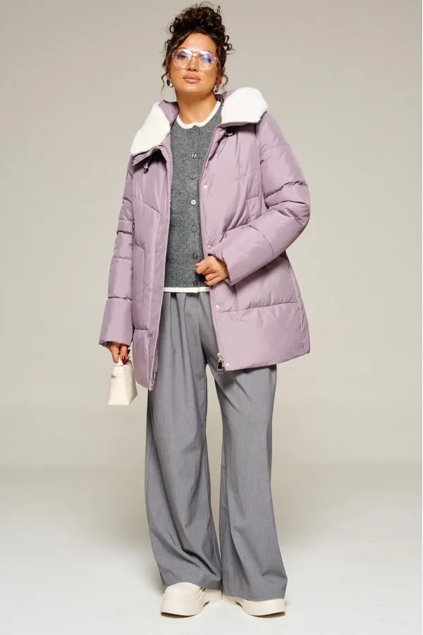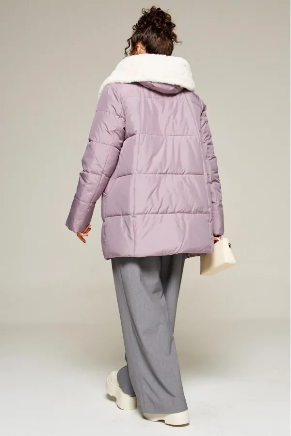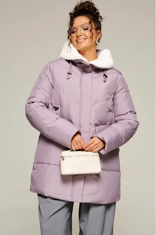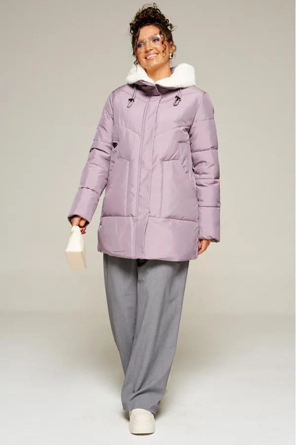 Капюшон с застежкой спереди умеренного объема. По периметру капюшона с внутренней стороны выполнена оторочка из искусственного меха, которая выполняет декоративную и защитную функции, создавая дополнительное тепло и защиту от ветра и холода.