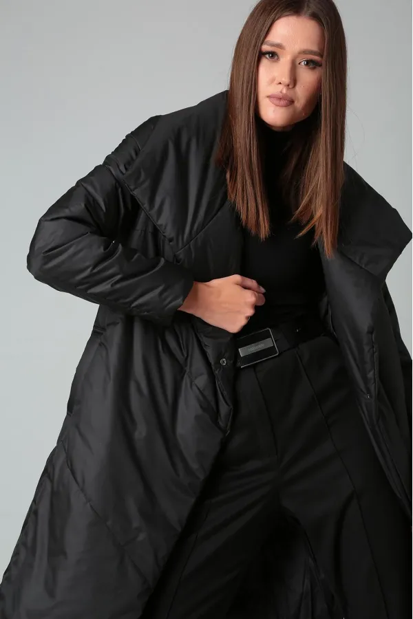 Стильное стеганное пальто с воротником Апаш из плащевой ткани. В боковых швах смещенных на полочку функциональные карманы с листочками. Застежка на кнопк. Рукав втачной двухшоный. Материал верха: курточная балонь. Уника... Читать далее...