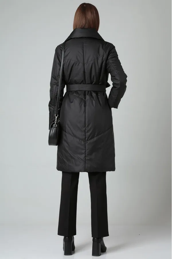 Стильное стеганное пальто с воротником Апаш из плащевой ткани. В боковых швах смещенных на полочку функциональные карманы с листочками. Застежка на кнопк. Рукав втачной двухшоный. Материал верха: курточная балонь. Уникальный бельгийский утеплитель Isosoft 120г на 1 м.кв. Демисизон. Температурный режим 0 - -10.