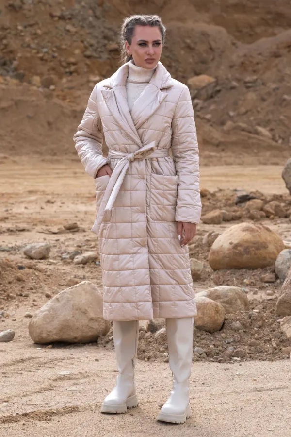 Цветовая гамма для верха, подкладки, фурнитуры, отделки: пальто выполнено из стеганной ткани.