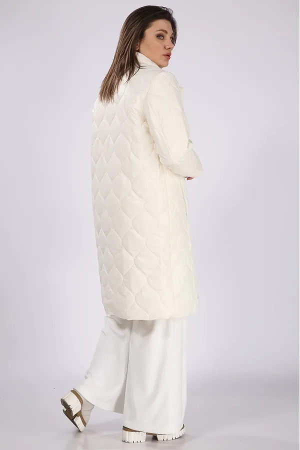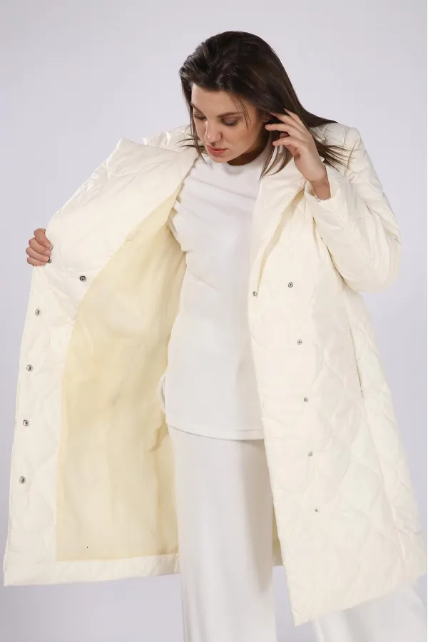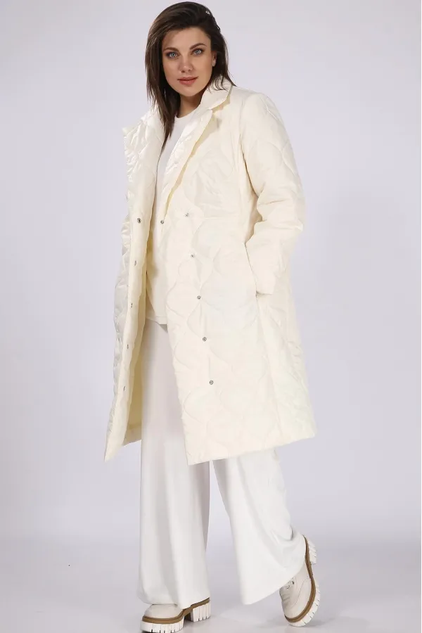 Демисезонное стеганное пальто классического кроя с поясов полуприлегающего силуэта, из плотной плащевой ткани на утеплителе FeelGood 150 г./метр кв., и ветрозащитной мембранной подкладки «Barrier». Карманы в рельефах на потайную молнию. Рукав втачной, застежка полуторная на кнопки. Температурный режим от +5 до -5 градусов.