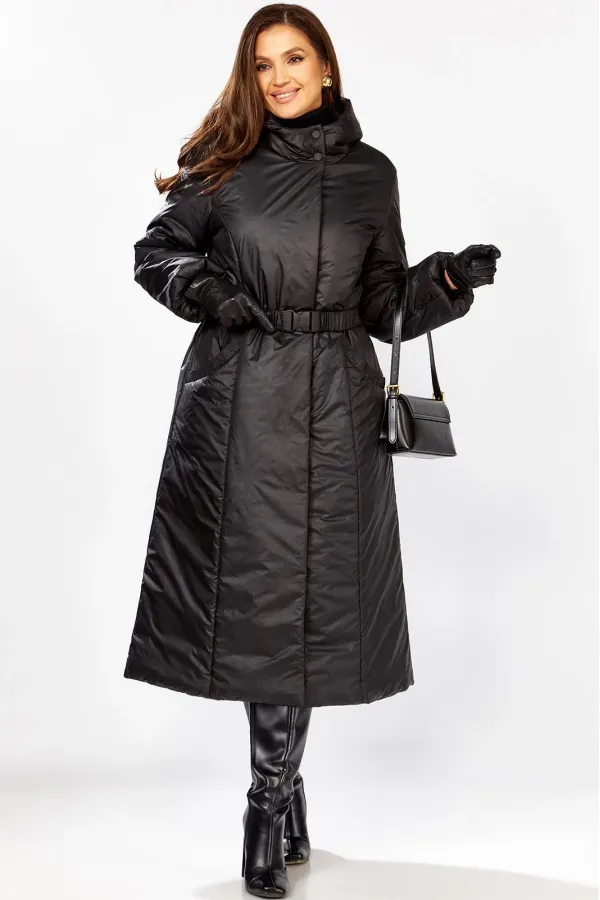 Зимнее стеганое пальто из ткани лакке - союз блеска и практичности. Элегантное, стильное, сочетающее себе комфорт и удобство. А-образный крой мягко формирует линию силуэта, создавая женственный и утончённый образ.