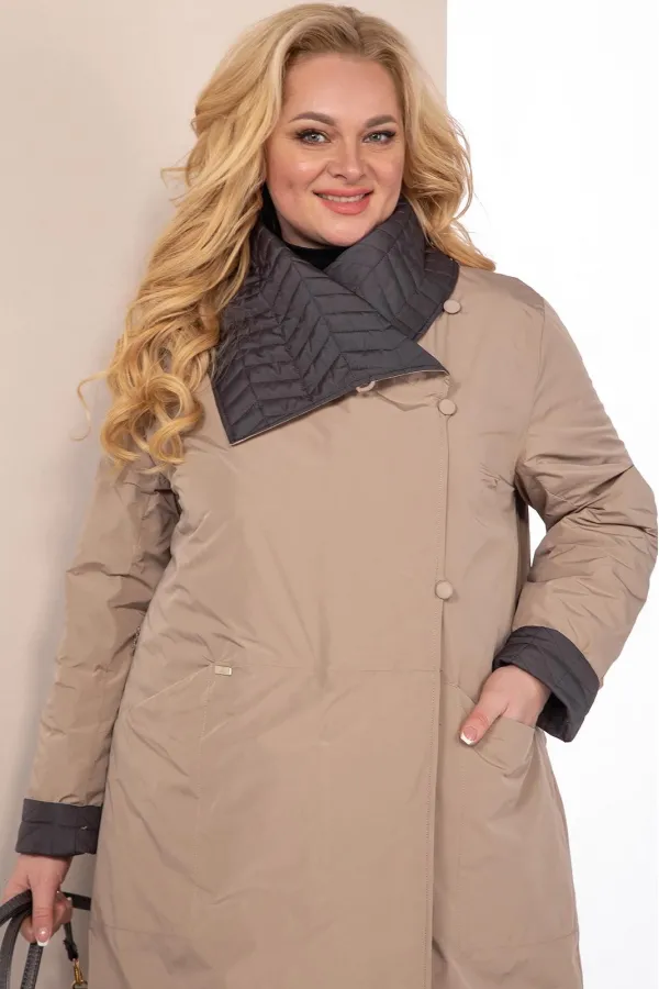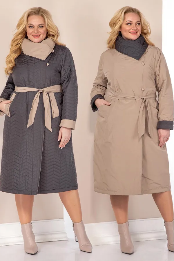 Если вы предпочитаете менять свои стиль в один день, то это пальто именно для вас, его можно носить на две стороны. Выполнено из двух тканей компаньонов, одна сторона однотонная матовая, другая сторона стеганная. Изделие сшито качественно, все швы выполнены в замок, поэтому швы на обеих сторонах красивые и аккуратные. Изделие на тонком высококачественном синтепоне, который легко восстанавливает форму и не теряет ее после многочисленных стирок. Пальто невероятно мягкое и легкое. По обеим сторонам изделия застежка со смещенной молнией и навесными петлями с застежкой на пуговицы (обтянутыми в тон основной ткани). Перед с нагрудными вытачками, матовой стороны, и функциональными карманами на внутренних магнитах. Вторая сторона куртки выполнена из плащевой ткани. По переду изделия нагрудные вытачки и функциональные прорезные карманы с листочкой (в тон основной ткани) на внутренних магнитах. Модель свободного силуэта. В комплекте пояс в тон основной ткани. Воротник отложной, фигурный, который фиксируется, под любой образ, при помощи пуговицы.