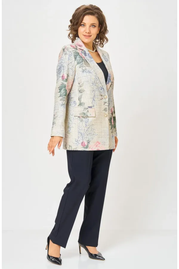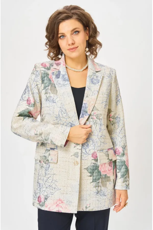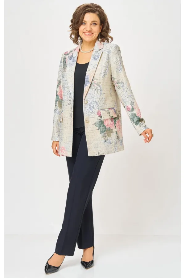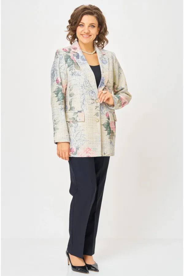 Этот жакет— воплощение уютной элегантности. Выполненный из фактурного твида, он сочетает в себе непринужденность свободного силуэта и безупречную классику кроя. Идеален для создания как повседневных, так и собранных образов. Воротник пиджачного типа, застежка до линии лацкана и изящные прорезные карманы с клапанами делают образ законченным и утонченным, жакет полностью на подкладке. Длина по спинке 75 см, длина рукава 63 см.