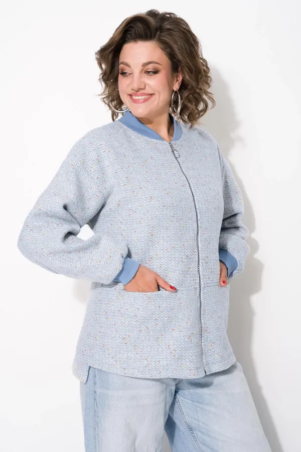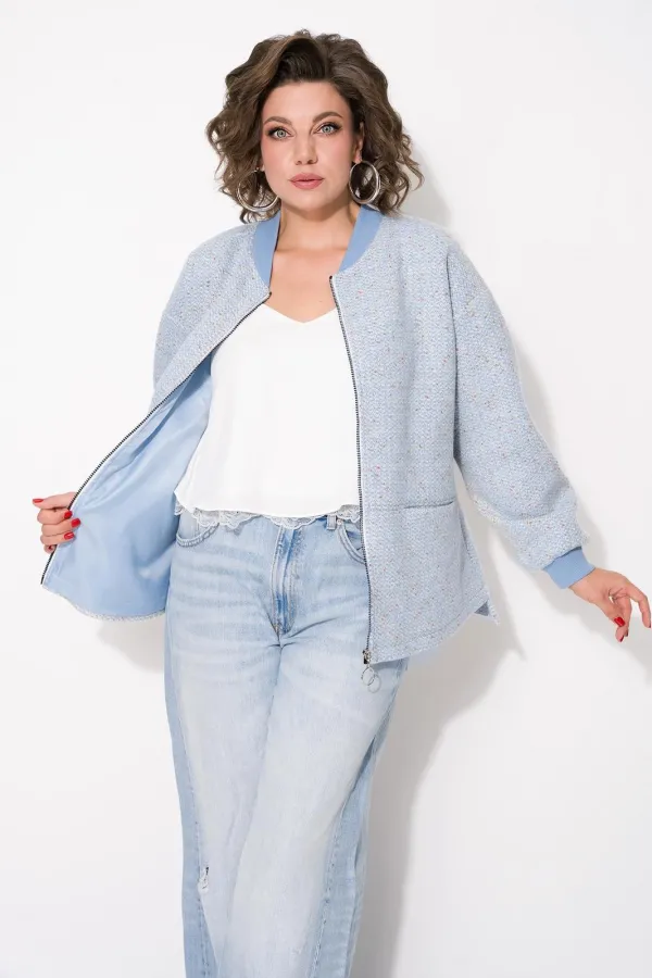 Женский твидовый жакет, по типу бомбера – стильная женская одежда на каждый день, которая станет отличным дополнением повседневного гардероба. Модель свободного силуэта, со спущенной линией плеча. Рукав длинный, с притачными манжетами по низу. Застежка центральная, на металлическую тесьму-молнию. Горловина обработана трикотажной планкой по типу – бомбера. Низ по полочке фигурный, по спинке удлинен. По полочке расположены рабочие карманы в шве! Свободная оверсайз модель подходит практически под любую фигуру. Модель на шёлковой подкладке!
