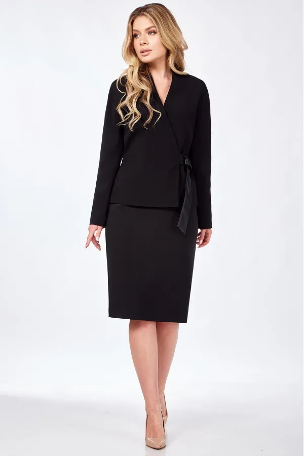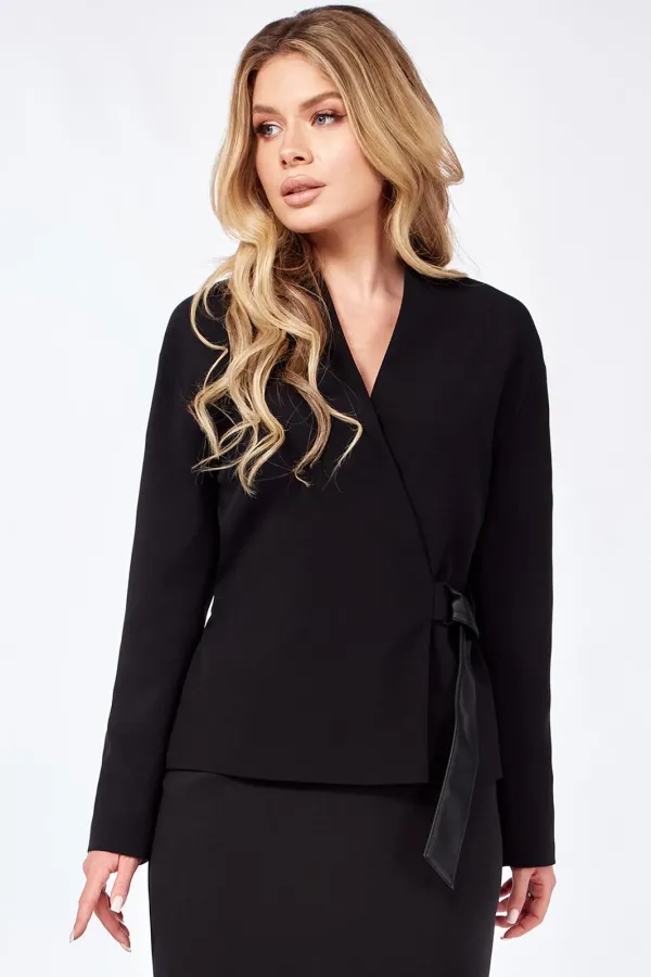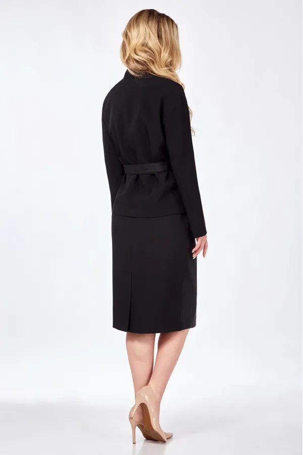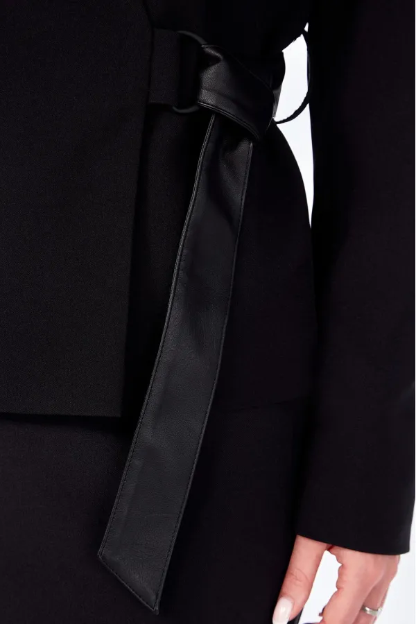 Текстильный жакет женский на подкладке на рост 170 см. Силуэт прямой. Линия плеча спущена, рукав втачной рубашечный длинный. Жакет с цельнокроенной стойкой. Жакет двубортный с потайной застежкой по талии и фиксацией на пояс из кожзама на полукольцах.