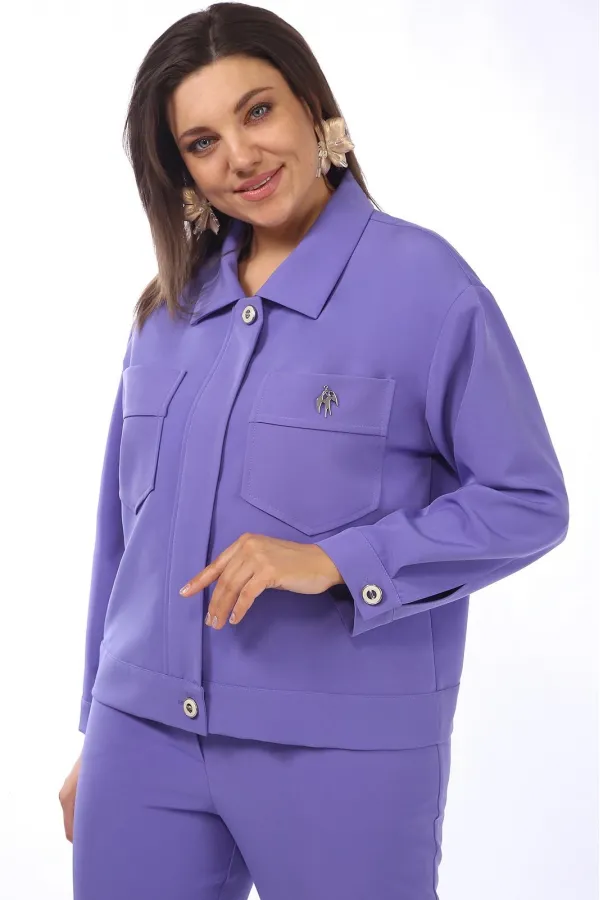 Жакет прямого силуэта с центральной застежкой на молнии и планкой,воротник отложной. По переду на уровне груди-накладные карманы,низ изделия на манжете. Рукав втачной, двухшовный на манжете.Жакет длина по спинке 65 см, д... Читать далее...