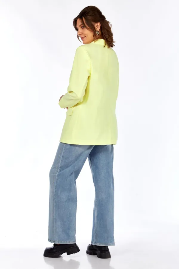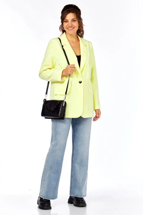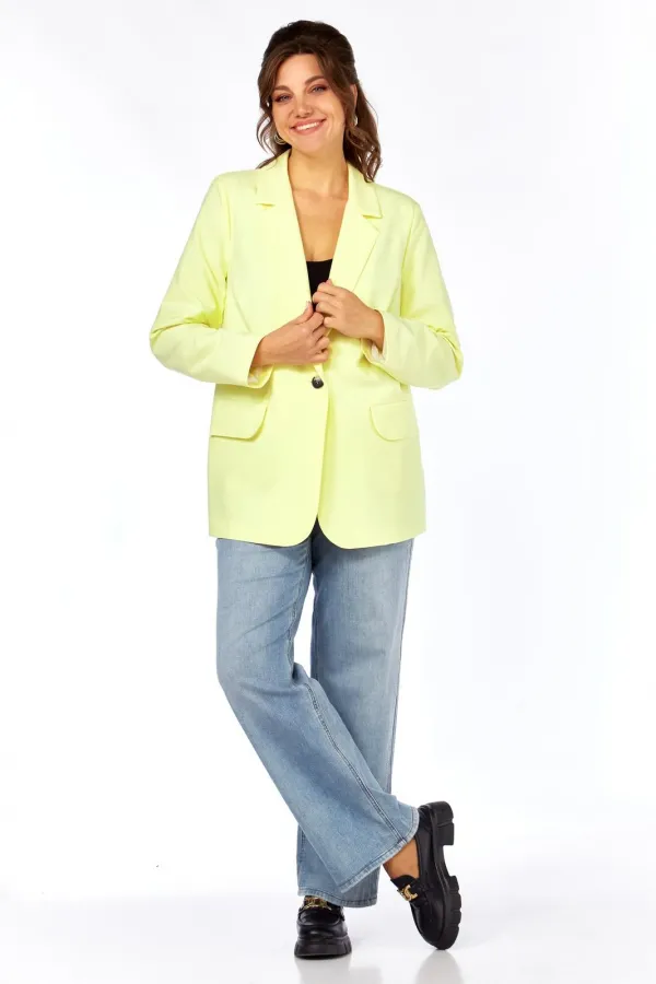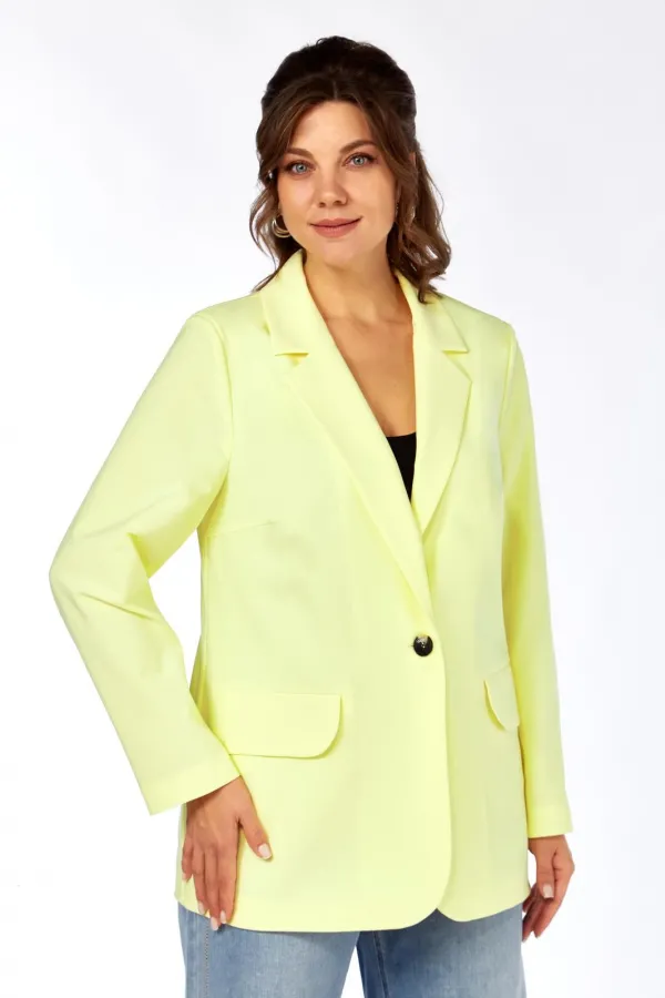 Жакет прямого силуэта, на подкладке с центральной застежкой на петли-пуговицы. По переду на уровне талии выполнены прорезные карманы с листочкой. Рукав втачной, двухшовный с цельнокроеной манжетой.