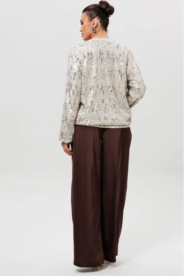 Жакет - бомбер с пайетками (Арт. 1279) создан для смелых и стильных образов. Куртка полностью покрыта мерцающими пайетками, которые создают неповторимый блестящий эффект при каждом движении. Жакет с пайетками отлично соч... Читать далее...