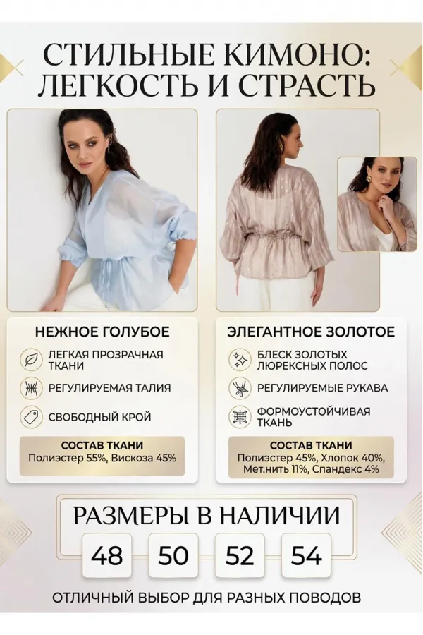 Цвета: золотой и голубой — два настроения: тёплое сияние и нежная свежесть.