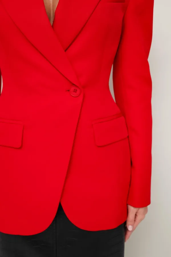 Силуэтный жакет с подчеркнутой линией талии. Смещенная застежка на петлю и пуговицу. Воротник пиджачного типа с отложными лацканами, край борта скругленный по низу жакета. Спереди обработаны прорезные карманы в рамку с ... Читать далее...